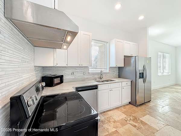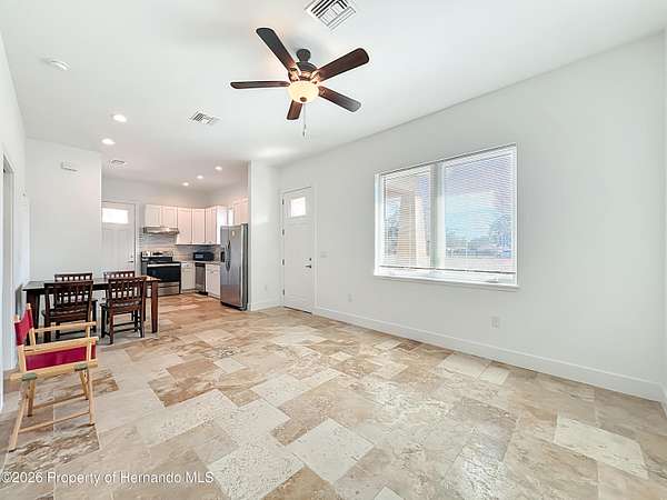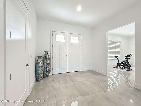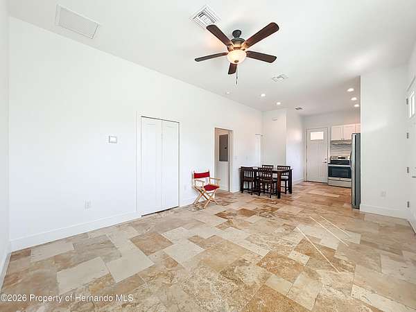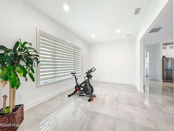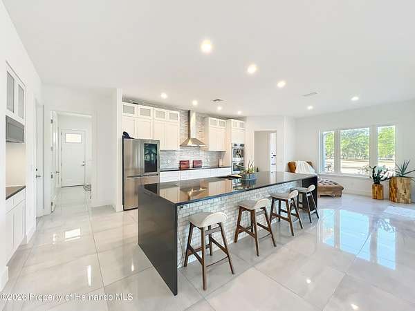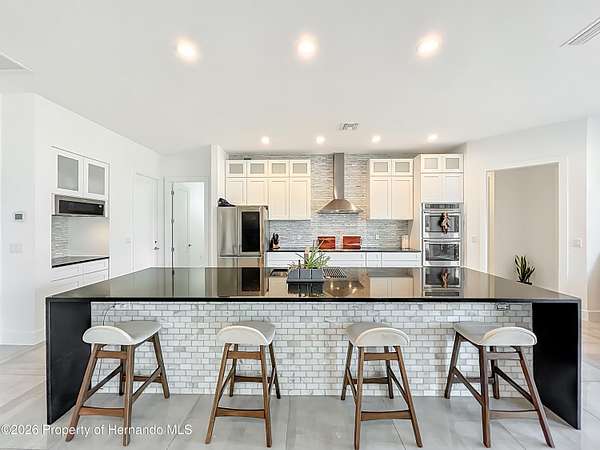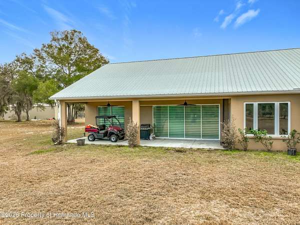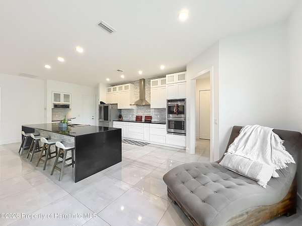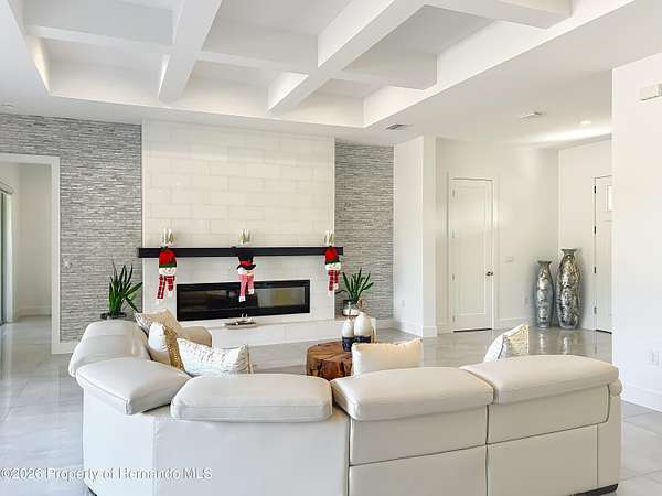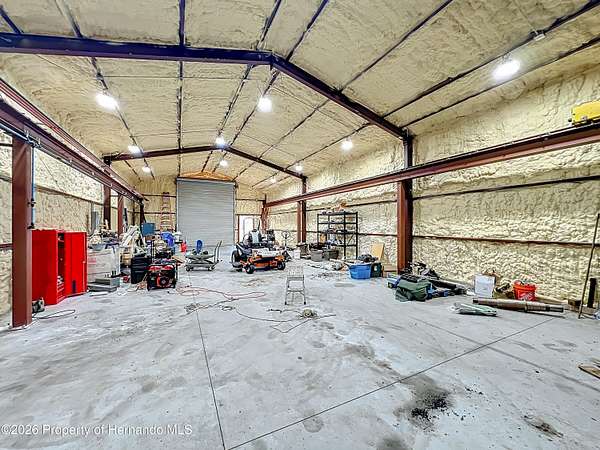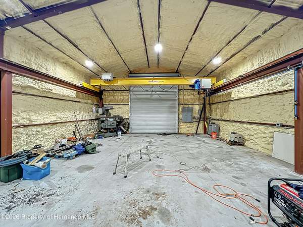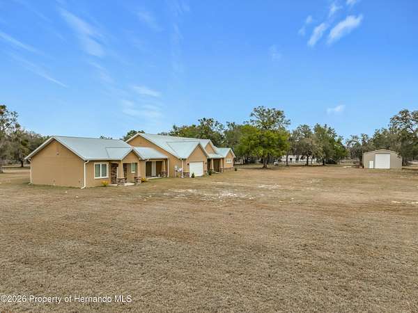 Spectacular opportunity awaits! This custom-built home, completed in 2020, features a separate apartment/in-law suite and sits on a fully fenced 10-acre lot with electric gated entrance. With two distinct residences and a massive 30X65 commercial-grade workshop, this property is just minutes from the world-renowned World Equestrian Center (WEC). Whether you're seeking space, income potential, or a prime location, this farm is an ideal choice. Located on a paved road with no HOA restrictions. Short Drive to both HITS and the World Equestrian Center, and moments from the natural beauty of Rainbow Springs. Professionally designed for efficiency, this unique property offers several income-generating possibilities. Live in one home and rent out the other (Airbnb/VRBO) for excellent returns or consider adding an RV hookup to welcome guests. The main residence features 3 bedrooms +office. This home impresses with a grand entrance featuring stone accent columns with a cozy front porch. Step inside to a stunning living room with coffered 10' ceilings, expansive built-in electric fireplace surrounded by tile with tile backsplash wall and sliding doors leading to the back lanai. 30x30 porcelain flooring and 8' doors add a touch of luxury, while the chef's kitchen boasts a Wolf induction cooktop, double oven, Bosch dishwasher, a separate coffee bar area, lots of soft-closed cabinets, and expansive granite counters with a gorgeous waterfall edge island. The private master retreat includes dual walk-in closets and a luxurious bathroom with an all-glass walk-in tile shower. Spacious second and third bedrooms share a well-appointed bathroom. A breezeway connects the main home with travertine tile to the in-law quarters, where you will find travertine tile throughout the home. This home offers two bedrooms, two full bathrooms, a comfortable living room, and a complete kitchen with soft-closed cabinets, granite counters, and is designed for ADA accessibility-perfect for multi-generational living or rental income. The commercial-grade workshop is built on solid concrete, is insulated and offers (2) 14 ft roll up doors. This shop comes equipped with a 3-ton lift extended the length of the shop, an Atlas 7 1/2 horsepower screw compressor with dryer, twin double amp panels, 100-amp breaker disconnect, and is wired for 3 phase, providing ample space for hobbies, storage, or a small business. The property is nestled in a quiet, equestrian-friendly neighborhood that's ideal for riding both on and off the premises. Outdoor enthusiasts will appreciate proximity to Goethe State Forest for horseback riding, hiking, and wildlife viewing, as well as the nearby Rainbow Springs State Park for kayaking and swimming.