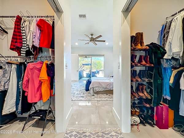- Breakfast Bar, Built-In Features, Ceiling Fan(s), Double Vanity, Eat-In Kitchen, His and Hers Closets, In-Law Floorplan, Kitchen Island, Pantry, Shower No Tub Primary Bathroom, Split Bedrooms, Walk-In Closet(s)