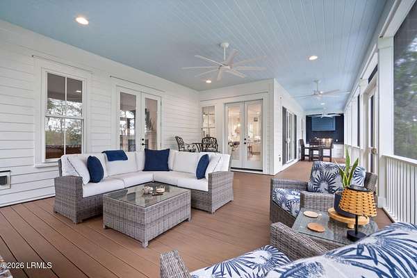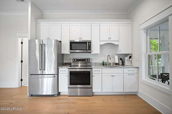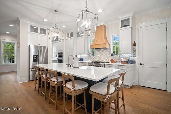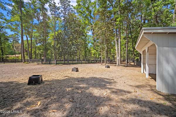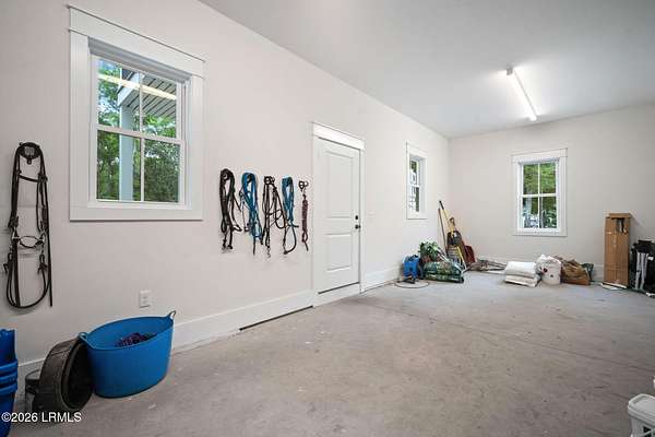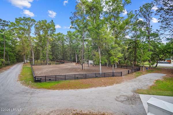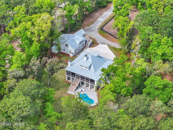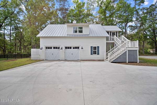 Tucked away along the serene tidal waters of Beaufort, 540 Sams Point Road is a rare Lowcountry retreat where luxury living meets an exceptional equestrian lifestyle. Set on approximately 5 acres, this one-of-a-kind horse farm features a private dock on a picturesque tidal creek--ideal for boating, kayaking, or simply enjoying breathtaking coastal sunsets. The thoughtfully designed main residence offers 2,759 heated square feet (3,744 total under roof), blending timeless architecture with modern functionality. The first floor showcases an inviting open layout with a chef's kitchen, breakfast area, formal dining room, spacious living room, private study, and a luxurious primary suite with a spa-like bath and walk-in closets. A convenient elevator, located just off the kitchen, Read more. provides seamless access from the ground level to the main living floor. The living room and primary suite each feature their own fireplace, creating warmth and ambiance in both spaces. Upstairs, two additional bedrooms and a full bath offer comfortable accommodations for family or guests. The kitchen is beautifully appointed with premium appliances, including a KitchenAid 36" Smart Commercial-Style Dual Fuel Range, counter-depth French door refrigerator, automatic icemaker, and a Bosch 800 Series dishwasher. Additional KitchenAid appliances extend into the utility room and carriage house, while the laundry room is equipped with a Maytag front-load washer and dryer with pedestals. Designed for both durability and classic Lowcountry charm, the home features cement fiber siding, metal roofing, brick veneer foundation, and decorative shutters. Outdoor living is exceptional, with a screened porch, front porch, and a spacious rear deck complete with an outdoor kitchen and fireplace--perfect for entertaining or unwinding in a private setting. The in-ground 30' saltwater pool with spa jets, propane heating, and Hayward OmniLogic system is surrounded by elegant pavers, creating a true backyard oasis. The property is also equipped with a whole-house Generac generator, thoughtfully sized to power both the main residence and the carriage house--offering peace of mind and uninterrupted comfort. The detached garage and carriage house provide incredible versatility, including over 750 heated square feet of living space above with a bedroom, bath, living area, and private deck. The garage is also equipped with a 30-amp outlet, ideal for RV use or as a charging station. Equestrian enthusiasts will appreciate approximately 3 acres of meticulously maintained pasture, enclosed with Kentucky 4-board fencing and divided into four seeded paddocks with solar-powered hot wire. The property includes multiple run-in sheds, a hay shed, water access points, and a fully equipped tack room with utility sink, hitching post, and covered trailer parking. Blending refined coastal living with thoughtfully designed equestrian amenities, this extraordinary waterfront property offers privacy, beauty, and versatility--just minutes from historic downtown Beaufort.