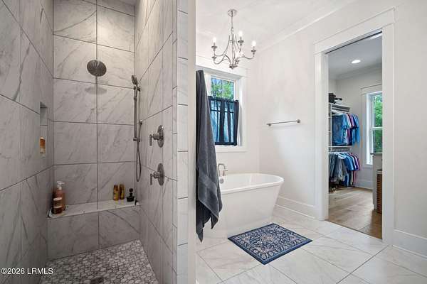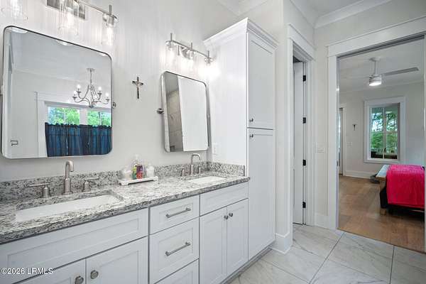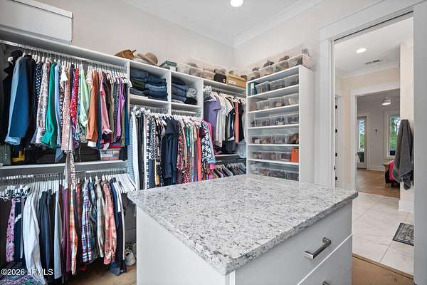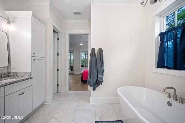 - Ceiling Fan(s), Crown Molding, Double Vanity, Elevator, Entrance Foyer, High Ceilings, Master Downstairs, Open Floorplan, Pantry, Recessed Lighting, Soaking Tub, Walk-In Closet(s)