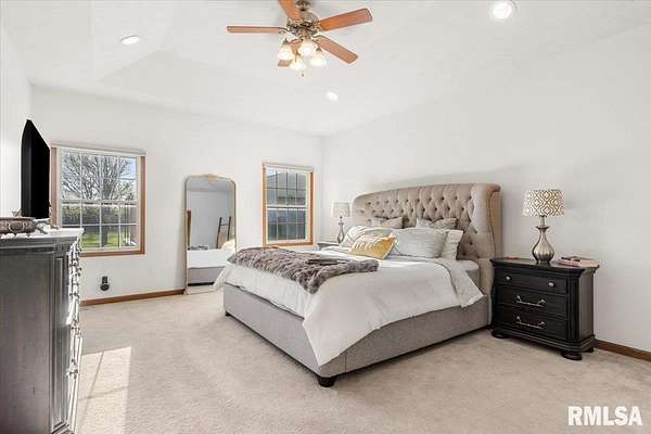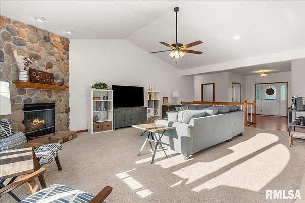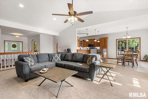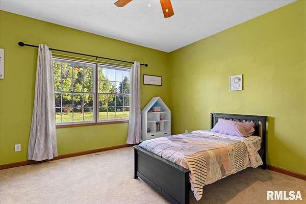 COMING SOON AND AVAILABLE FOR SHOWINGS ON 4-22-26. Quiet cul-de-sac living meets country lifestyle in this spacious 5-bedroom, 3 bath home on 2+ acres in the highly desirable Pleasant Plains School District. The main floor includes 3 bedrooms, including the primary suite with walk-in closet and private bath with tub and shower, an additional bath near the two main floor secondary bedrooms, kitchen, living room, dining area, main floor laundry, large foyer, and a flexible room ideal for an office, sitting room, or playroom. The lower level offers new carpet throughout and a 4th bedroom w/egress, and 5th bedroom/office without egress, 3rd full bath, large family room, and abundant unfinished storage. Fresh neutral paint welcomes you inside, and the eat-in kitchen opens to a cozy screened-in patio overlooking the stamped concrete patio, large backyard, fruit trees, and updated landscaping.The property features flat, usable land with a 50' x 65' Morton outbuilding w/concrete floor, large overhead door, water, electricity, and ethernet - ideal for a workshop, storage, RV, or boat. Additional outdoor features include a fenced dog run directly off the rear door of the attached garage, fenced chicken/animal area, and 11 fruit trees with deer fencing. available High-speed Starlink internet (~430 Mbps), a 500-gallon owned underground propane tank, and gas lines present for dryer and stove for versatility. Call your favorite Realtor right away to schedule a tour of this amazing home!