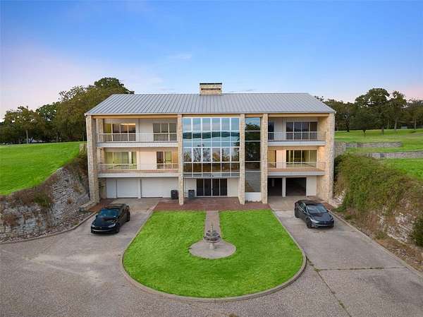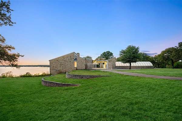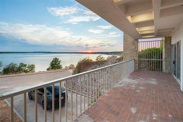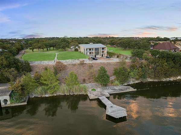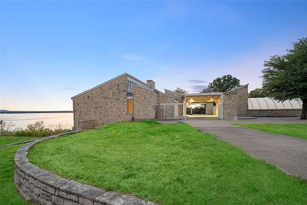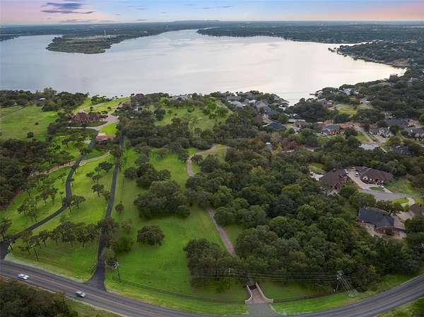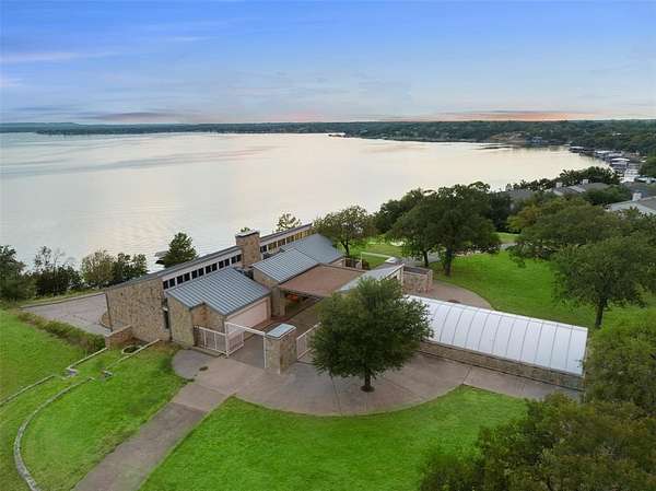 This serene, custom-built estate is privately gated and nestled on nearly 17 acres of picturesque land in Granbury. The property features a stunning park-like drive, winding through natural beauty before opening up into a spacious circular drive leading up to the estate. The estate boasts breathtaking panoramic views of the lake, with nearly 420 feet of pristine waterfront.