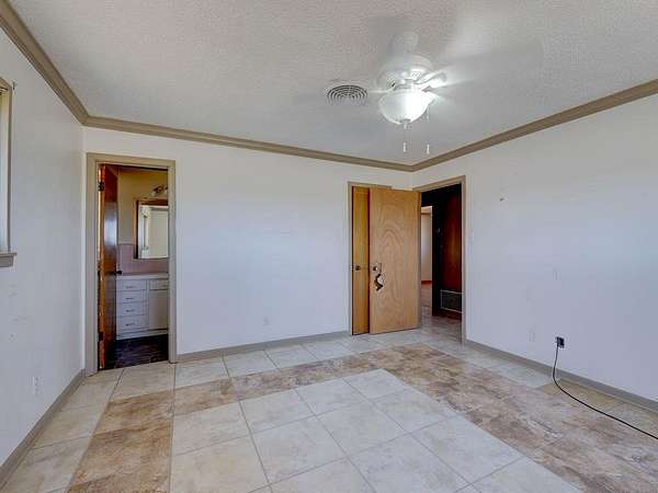 - Built-In Features, Ceiling Fan(s), Natural Woodwork, Primary Bedroom On Main, Tile Counters, Walk-In Closet(s)