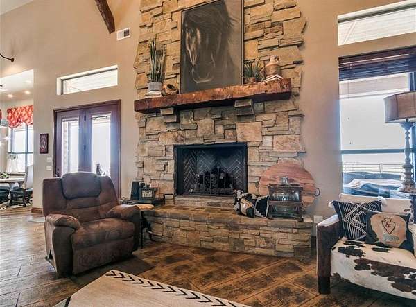 Upstairs, a generous game room provides the perfect retreat for relaxation and fun. The master suite serves as a true sanctuary, complete with its own custom fireplace, creating an inviting and luxurious ambiance.