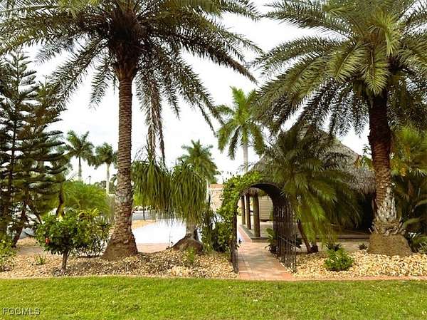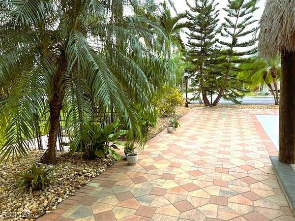 Behold this beautiful premium 50x90 Corner Lot in Cypress Trail RV Resort, just 10 minutes from the heart of Fort Myers This roomy corner lot in gated Cypress Trail, Fort Myers, FL, offers premium RV living amid mature trees, landscaping, and a stunning Tiki. Highlights: - Lot: Landscaped pavers, 5 palm types, flowers, drip irrigation, 3 water bibs, accent lighting, 3 post lamps, outlets, Stone Flake Polyaspartic Coated RV slab. - Tiki Hut: 16x23 timber, elevated paver floor, electric, stainless fan, 65" TV, 2 Bluetooth speakers; plumbing roughed in for kitchen. - Shed: 10x12 metal-roof, 100-amp electric, plumbing for bath/laundry/kitchen. - Walkway: Paver path via arbor to common space for pet walks. - Parking: Easy straight-back for large RVs. - Amenities: 12,000 sf clubhouse, dog park, gym, pool, hot tub, pickleball and bocce. 15 min from Downtown Fort Myers River District-dining, entertainment, culture. Ideal golf-cart community.