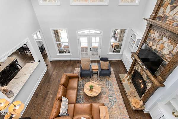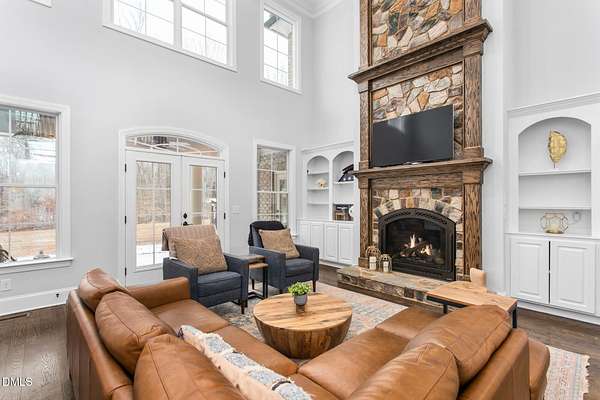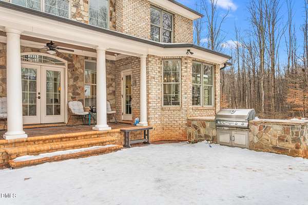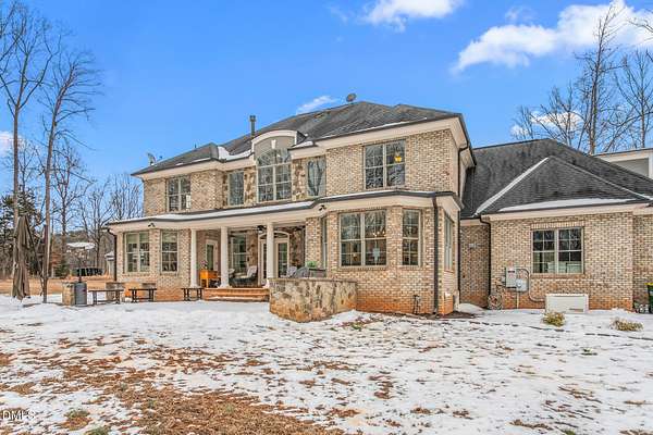 Privacy, peace, and quality like this are rare. Set on 25.27 acres along the Eno River and Hailey's Creek, this custom-built two-story estate residence is surrounded by protected acreage and conservation land, creating a natural and enduring buffer. The home offers 5 bedrooms, 4.5 baths with a thoughtfully designed main-level layout that balances everyday comfort with refined finishes. The kitchen is appointed with GE Monogram stainless steel appliances, a gas cooktop, granite countertops, and an eat-in dining area, opening seamlessly to the living room with custom built-ins, a two-story stone fireplace, and abundant natural light. The primary suite is located on the main level, offering privacy and ease, with dual custom closets and a well-appointed en-suite bath featuring separate vanities, a soaking tub, and a walk-in shower. A private office with custom cabinetry and a beautiful coffered ceiling is also located on the main level. Upstairs, the home continues to offer generous proportions, including additional bedrooms with walk-in closets, private baths, and a bonus room over the garage suitable for a variety of uses. Outdoor spaces are intentionally designed, featuring stamped concrete porches and patio, a built-in outdoor gas grill, and walking paths through the wooded acreage leading toward the creek and river. A 50' x 48' metal barn/shop provides exceptional flexibility, with a large door opening suitable for RV, boat or equipment storage, a separate 200-amp electrical meter, and 50-amp RV power with a dedicated pad. A welcoming front entrance and open front yard offer additional opportunity for outdoor enjoyment or future pasture use, while the wooded acreage and creek setting support abundant wildlife and a strong connection to nature. Located within a private four-home subdivision that terminates at this property, the setting is quiet and secluded, yet just minutes from downtown Hillsborough with convenient access to the Triangle and the Triad (I-40/I-85). A rare northern Orange County offering for those who value land, privacy, and long-term stewardship.