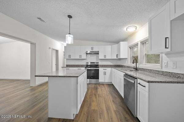 This totally rehabbed MFH has so much open space, The GR is huge & the home has upgraded vinyl wood look floors through. The DR is really big & has room for big family gatherings. The kitchen has a ton of new cabinets with soft close drawers plus brand new range & D/W & a central island to prepare food & eat on. There is a pantry & a laundry room that has tons of space & opens to private back yard. New water heater & well pump & Brand new HVAC will be installed prior to closing. The roof is metal & only a few years old There is 2 acres so room for animals, garden & toys. There is a nice deck in the back. The Bedrooms on one end are extra big with large walk in closets & share a renewed bath room. The master suite on other end of home for privacy has a nice size shower & a new large soaking tub. There are two vanities & really big walk in closet. hard to find a new looking home on 2 acres of really usable private land but close to town & 295. Seller has lenders with good rates if need