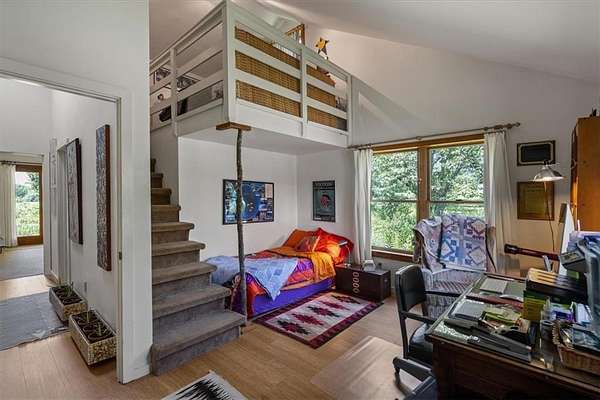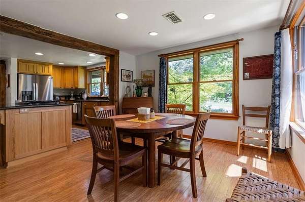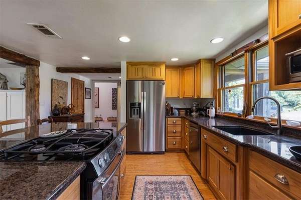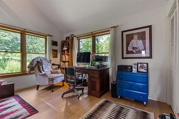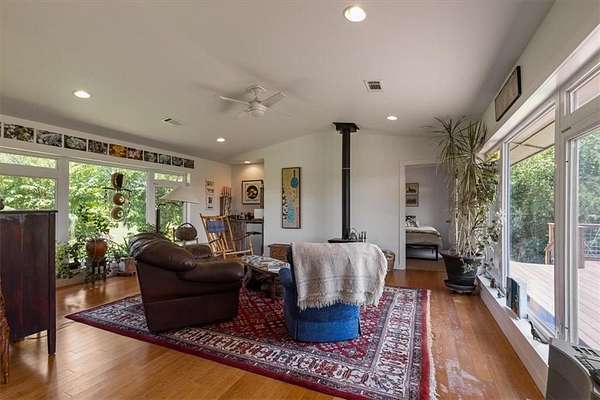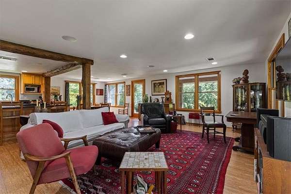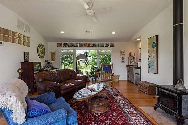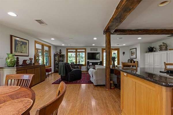 - Attic Storage, Blinds, Built-Ins, Cathedral Ceiling, Ceiling Fans, Eat-in-Kitchen, Granite Counters, Ice Maker Connection, Smoke Detector, Woodstove