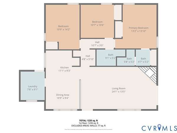 - Bathroom x 2, Bedroom x 3, Dining Room, Laundry Room x 2