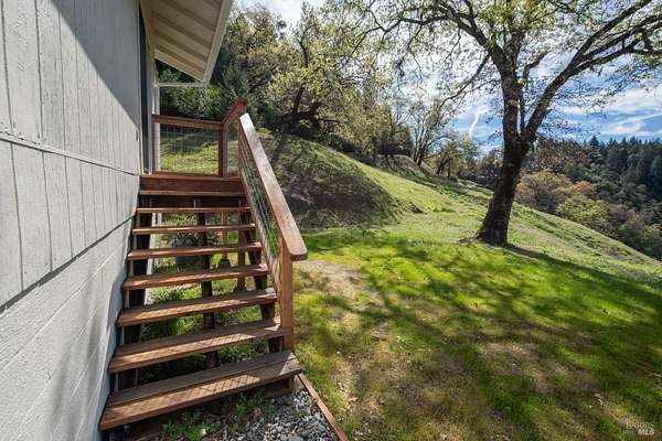 Back on the market and looking better than ever! Significant recent improvements include a newly replaced roof, new gutters and downspouts, freshly repainted exterior, newly painted kitchen cabinetry, and rebuilt redwood decks and railingsmaking this charming property truly move-in ready. Nestled just behind the prestigious Wildwood gated community, this unique single-family home offers the privacy and security of gated access without being part of the HOA. The setting provides a rare combination of seclusion, convenience, and sweeping views of the surrounding valley and hillsides. The main residence features 2 bedrooms and 1 bathroom, creating a comfortable and inviting living space filled with natural beauty just outside every window. A standout feature of the home is the large basement level with separate outdoor access, offering excellent flexibility for storage, a workshop, hobby space, or potential future expansion. The property also includes a partially completed ADU on one of the lower terraces, presenting exciting possibilities for guest accommodations, rental income, or a private studio. A separate storage building adds even more functionality. Located just off the paved section of Spyrock Road, a county-maintained roadway, access is easy with paved roads leading all the way to the Wildwood community gate. The home is connected to PG&E power, providing reliable utilities. With its recent upgrades, flexible spaces, beautiful views, and unique gated access location, this property offers a rare opportunity to enjoy peaceful country living with added convenience and security. Come experience this beautifully refreshed property and imagine the possibilities.