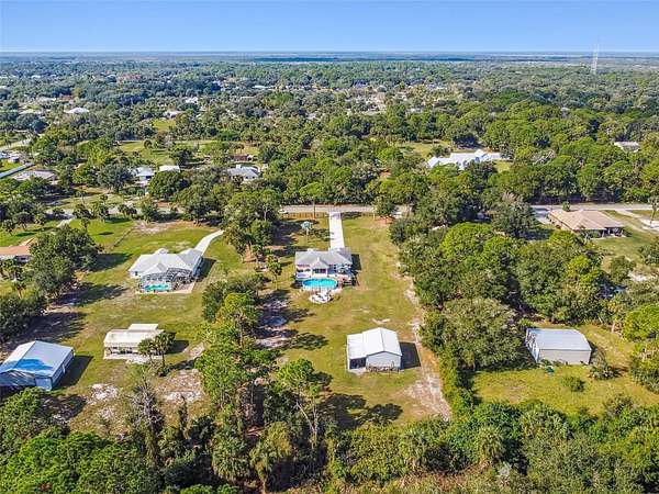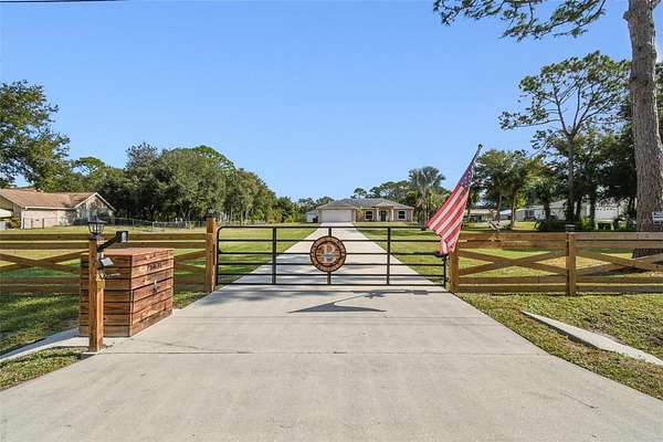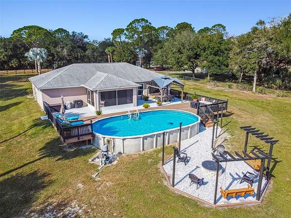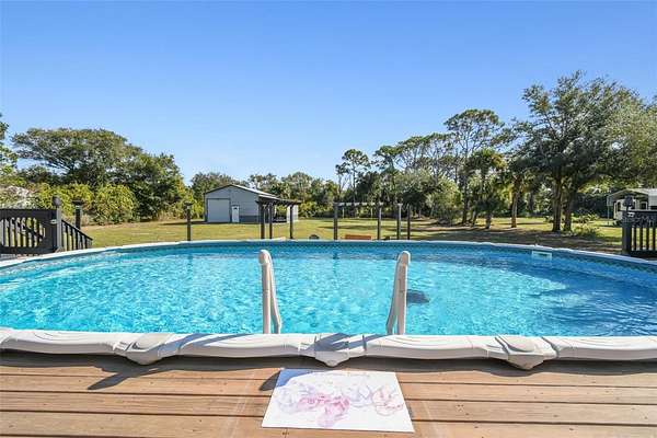Welcome home to this warm, inviting, and highly functional split floor plan oasis, perfectly designed for entertaining and everyday comfort. Bring your RV's, BOATS, SXS, + MORE! Situated on 1.68 acres, this property offers a rare combination of privacy, space, and resort-style outdoor living. Step inside to an open-concept layout featuring a cozy living room and an inviting kitchen with updated appliances (2022). The split floor plan offers ideal separation, two bright guest bedrooms and a full bath to one side, and a spacious primary suite to the other, complete with his-and-hers sinks and a walk-in closet. One of the most stunning features of this home is the backyard retreat, which through the screened-in patio, you'll be greeted by a tropical-inspired 18x33 saltwater pool (installed 2023) surrounded by an expansive wood deck and a beautiful outdoor setting that truly feels like a private getaway. A solar-powered gazebo with a built-in TV cabinet sets the scene for gatherings, game nights, or relaxing afternoons. Nearby, a magazine-worthy firepit invites you to unwind in style. For those needing extra space, the property includes a large 24x36 workshop with a 12'' lean to (2019) with electrical that can be used for storage, hobbies, a home business, or even converted into a mother-in-law suite. The home is double insulated for comfort and efficiency and the gazebo is powered by solar. Outdoor amenities continue with RV hookups already in place, pineapple trees on the property, and a newly installed solar-powered gate with keypad and timer for added convenience and security. A full alarm and camera system is also included. Major improvements offer peace of mind: Roof 2019, Detached Workshop 2019, Driveway 2019, A/C system 2020 (with UV light added in 2022), Water heater 2021, Saltwater pool, pump, deck, and slab 2023, Appliances - 2022. This home truly has it all--modern comfort, thoughtful upgrades, room to grow, and the kind of outdoor living space that feels like a getaway every day. Less than 30 minutes to Cocoa Beach, under an hour to Orlando, close to shopping and great dining, and conveniently close to major highways.