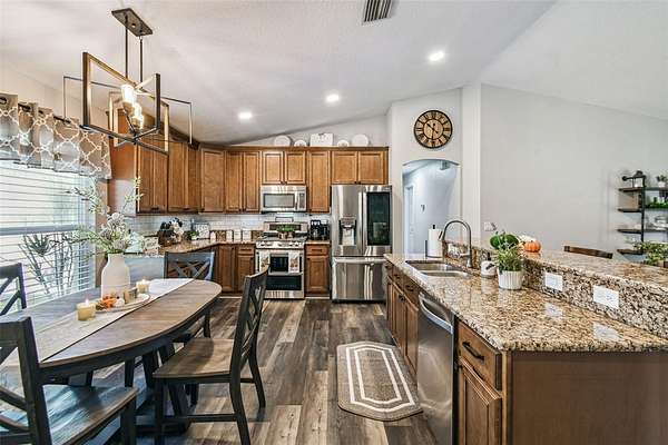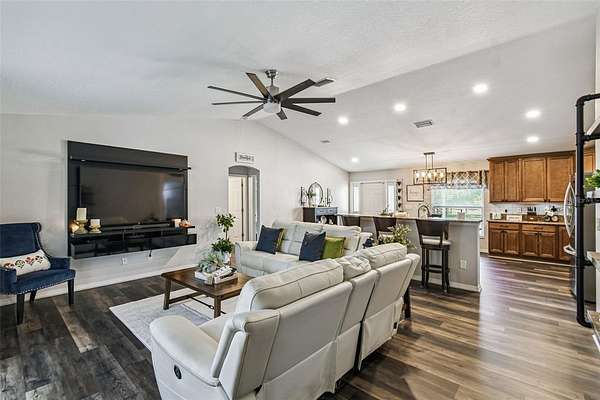 - Ceiling Fans(s), Eat-In Kitchen, Kitchen/Family Room Combo, Open Floorplan, Split Bedroom, Vaulted Ceiling(s), Walk-In Closet(s), Window Treatments