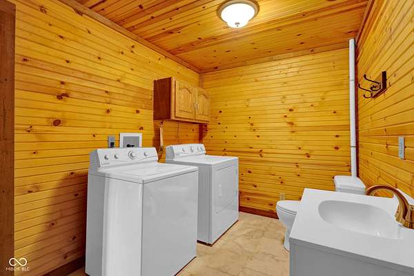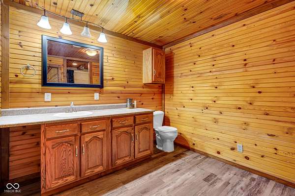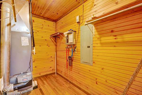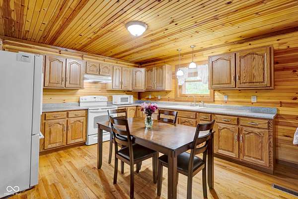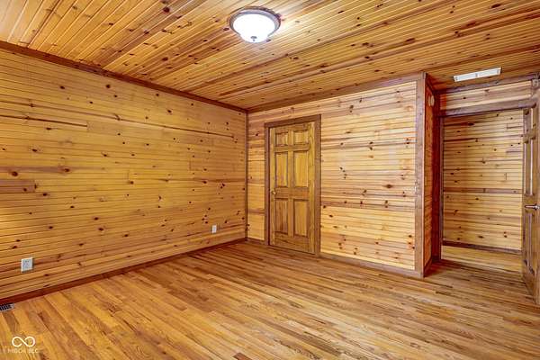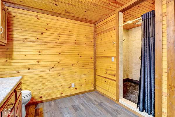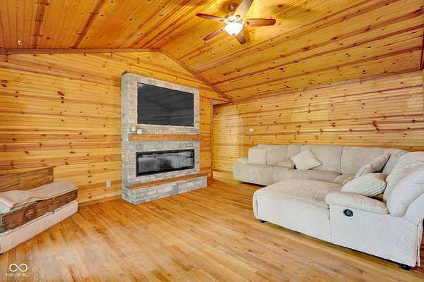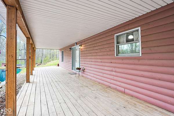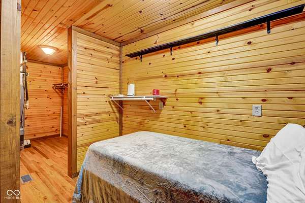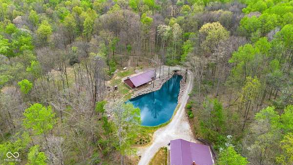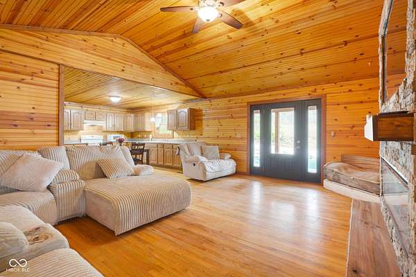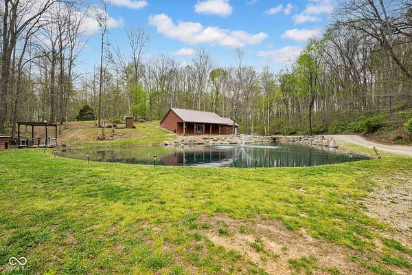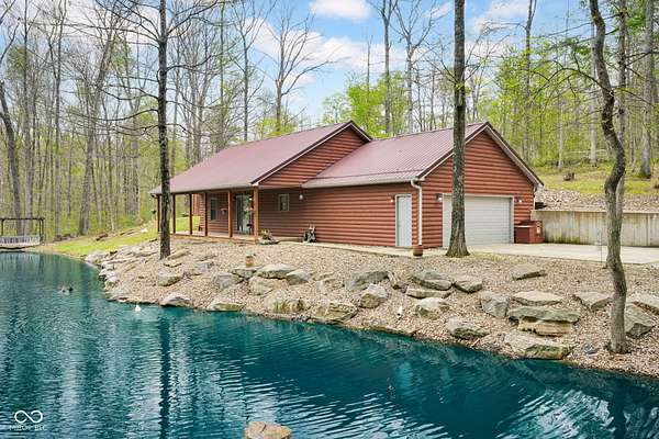 Est $1,899/moA hidden paradise, custom cabin sitting on a little over 10 acres with a 14ft deep center stocked pond, 42ft long covered front porch, two pole barns, and a lean-to. Cabin features 1 bedroom, 1 bonus room, 1.5 bath, 5x6 tile spacious shower with rainfall shower head, electric fire place, two car attached garage, and laundry room. Additional offerings with a finished must see 25x50 pole barn with electric, water, Hvac, water heater, wood burning stove, full bathroom, washer and dryer hook ups! A second 32x32 pole barn offers a 14ft sliding door and an ample amount of space for storage or events! Whole home generator, new septic, new plumbing, chicken coop and more. One of a kind and homestead ready!