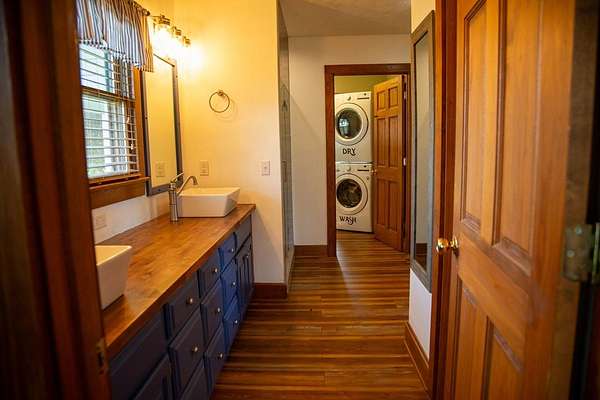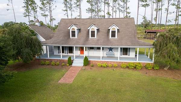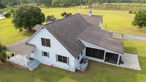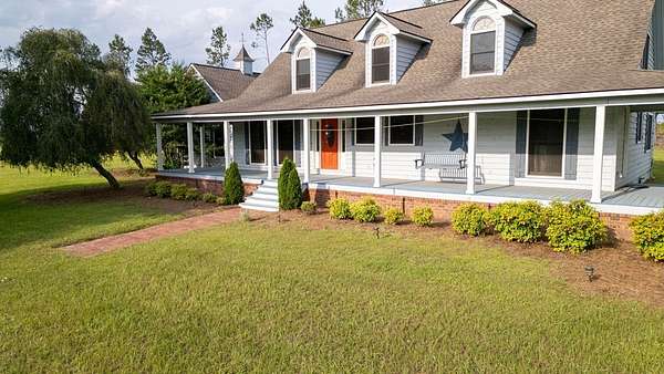 Stunning southern charmer! This property has so much to offer from start to finish. The house sits on 18+ acres with a one acre pond. As you approach the house you can't help but notice the beautiful wrap around porch, perfect for sitting and enjoying views of the pond. The back of the house has a spacious screened in porch and a custom built bonus room with unique rustic detail, great for an office or additional living space. The 3,000 sq ft home has 4bd/3.5bth with beautiful pine floors on the main level and staircase. The kitchen offers plenty of cabinets for storage and granite counter tops. The master bedroom is on the main level and features double sinks, a walk-in tiled shower, jetted tub and walk-in closet. There's an additional guest room with full bath on the main level and two large bedrooms with shared bath upstairs. Don't forget about the 40x40 shop with a roll up door, bathroom and wood burning stove perfect any hobbiest or farmer.