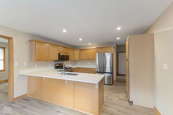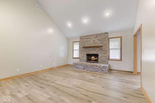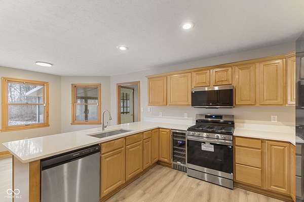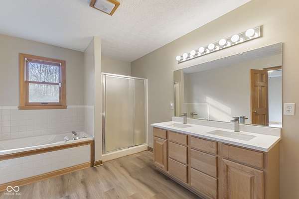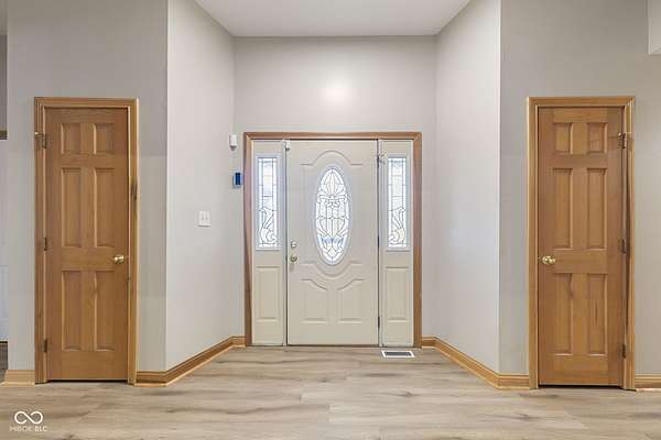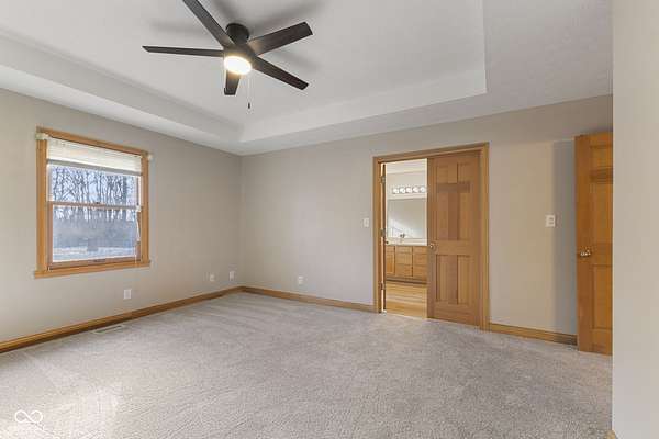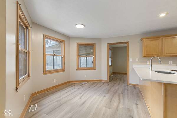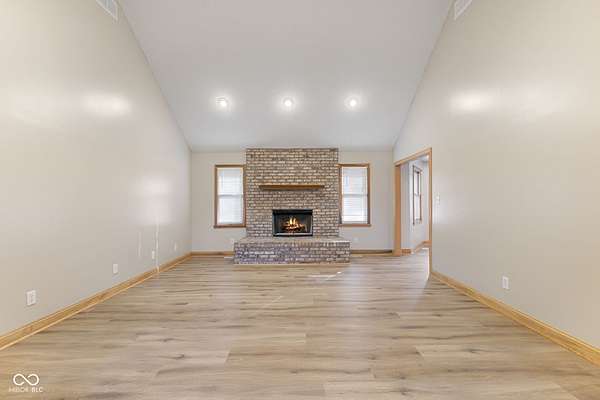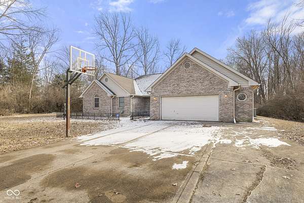 Set on 3.01 wooded acres near Beech Grove with convenient interstate access, this custom-built 2,144 sq. ft. ranch offers a rare combination of privacy, modern updates, and everyday functionality. With 3 bedrooms and 3 full baths, the home delivers spacious single-level living surrounded by mature trees and peaceful views. From the moment you enter the foyer, the Great Room's cathedral ceilings and gas fireplace create a striking first impression, offering both warmth and architectural character. The updated kitchen is designed for daily living and entertaining, featuring new stainless steel appliances, quartz countertops, maple cabinetry, vinyl hardwood flooring, and a wine refrigerator. The primary suite provides a true retreat with a Jacuzzi tub, separate shower, dual vanity with new quartz countertops, and a generous walk-in closet. New carpet in all bedrooms enhances comfort, while vinyl hardwood flooring throughout the rest of the home adds durability and a clean, modern look. Additional highlights include 10-foot ceilings, 6-panel doors, and stained trim that reflect quality craftsmanship throughout. Enjoy multiple spaces to relax or entertain, including a private family room and a separate sunroom overlooking the wooded acreage-ideal for morning coffee or quiet evenings. Practical features include a 25x21 finished garage, well, and twin-system septic, offering efficiency and peace of mind. Located just minutes from Beech Grove, shopping, dining, parks, and major commuter routes, this property blends rural privacy with urban convenience-perfect for those seeking space without sacrificing access.