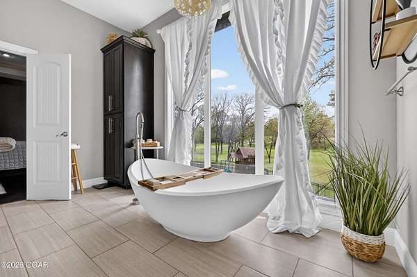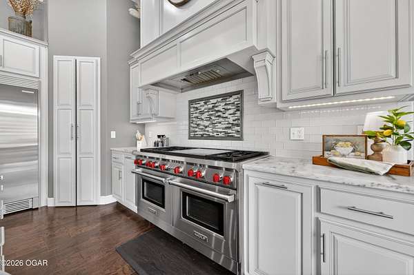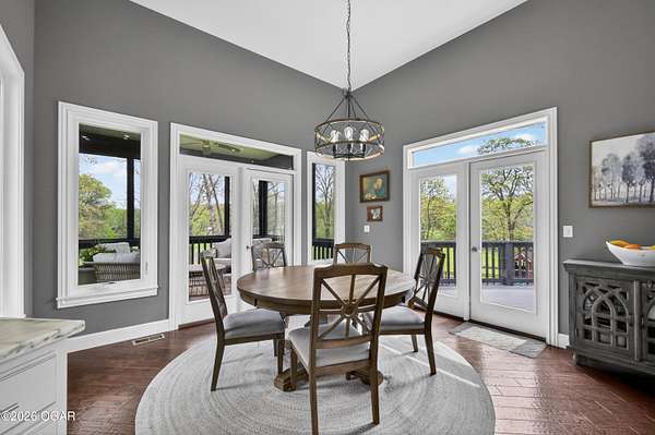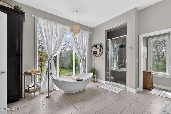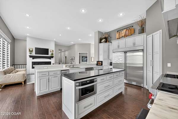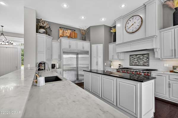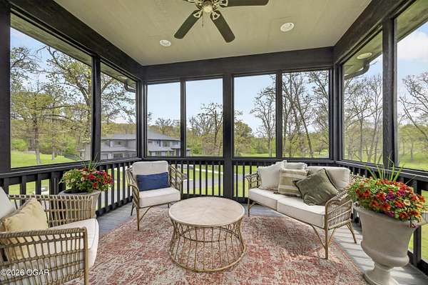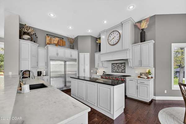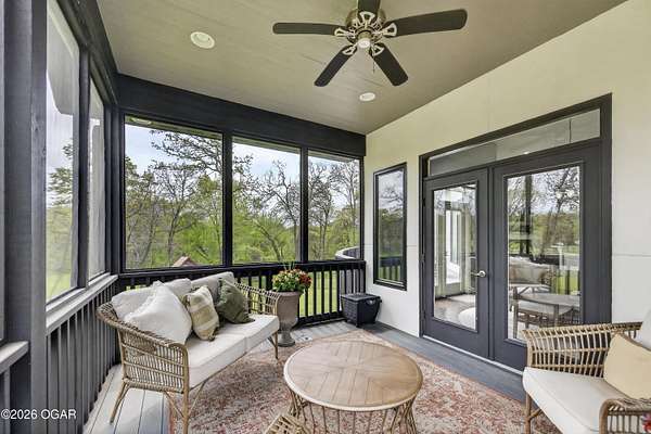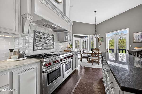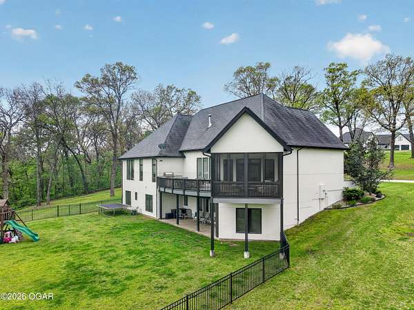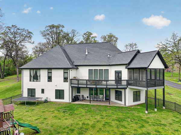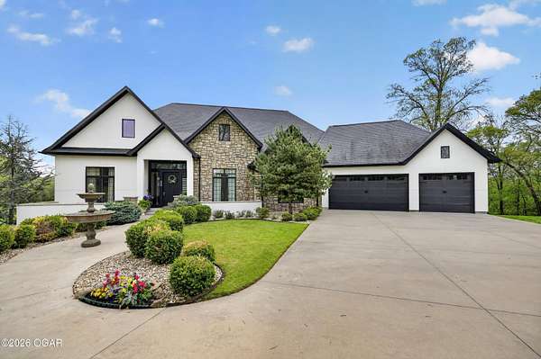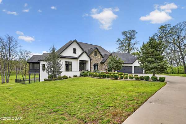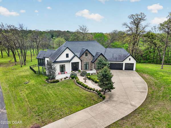 Luxury. Privacy. Presence. Opportunities like this are rare--an exceptional custom-built estate tucked inside one of South Joplin's most sought-after gated communities, set on 3 acres with breathtaking, uninterrupted views. Blending rustic warmth with modern sophistication, this home was designed for both elevated everyday living and effortless entertaining. The heart of the home is a stunning gourmet kitchen that commands attention--featuring a Wolf 6-burner gas range with griddle, top-tier appliances, abundant custom cabinetry, and seamless access to the outdoor living space--perfect for hosting or unwinding in your own private retreat. The primary suite is a true sanctuary, offering a spa-like feel with heated floors, an oversized custom walk-in closet that connects directly to the utility room for ultimate convenience--thoughtfully designed for how you actually live. The walk-out lower level expands the home's versatility in all the right ways--featuring three spacious bedrooms, two additional bathrooms, a full secondary kitchen, and a generous living area ideal for guests, multi-generational living, or long-term stays. A dedicated flex space creates the perfect setting for a media room, gym, or private office, while the unfinished area provides substantial storage rarely found at this level. With direct access to the lawn, the lower level lives like its own private retreat. Enjoy the serenity of a private, country-style setting while being just minutes from both hospitals, dining, and daily essentials--the best of seclusion without sacrificing convenience. This is more than a home--it's a lifestyle.