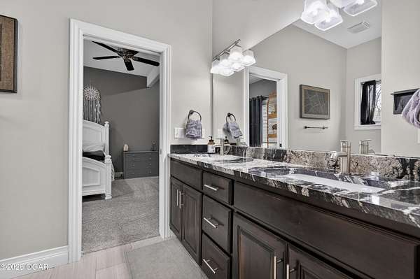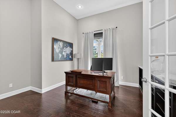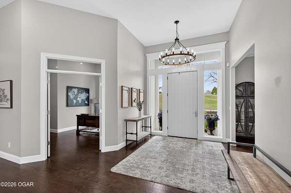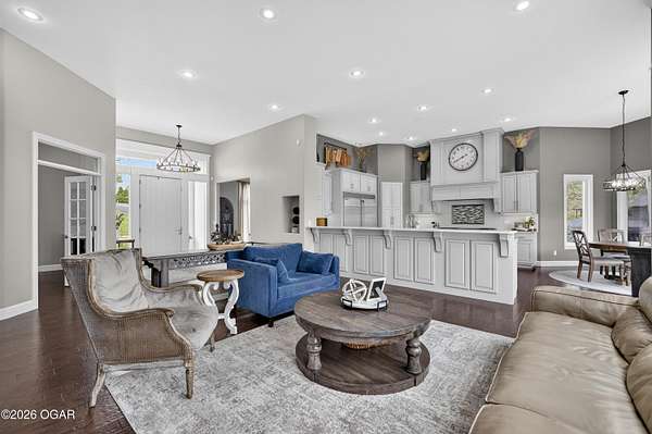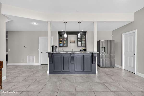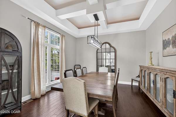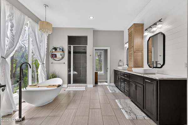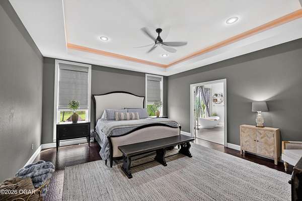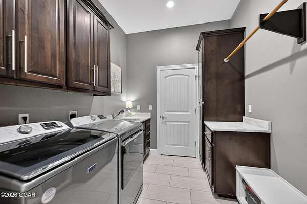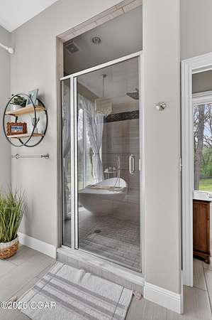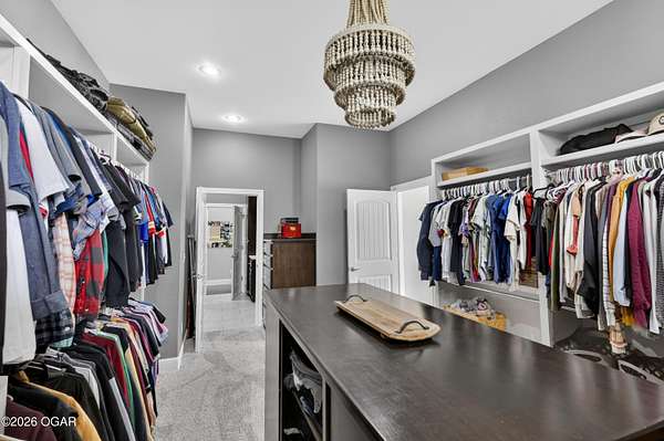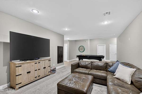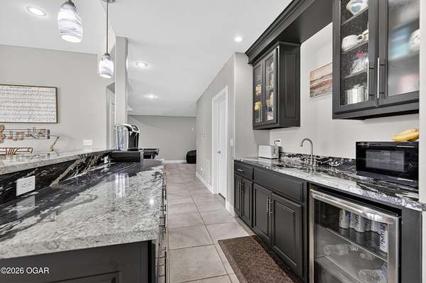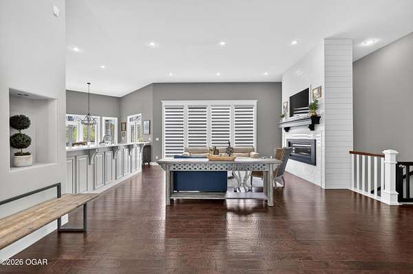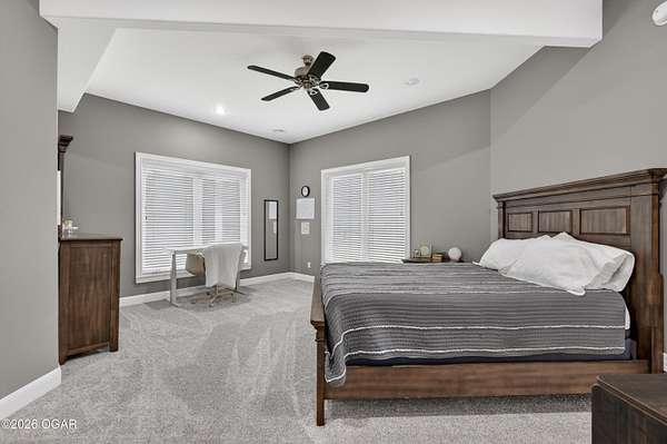 Luxury. Privacy. Presence. Opportunities like this are rare--an exceptional custom-built estate tucked inside one of South Joplin's most sought-after gated communities, set on 3 acres with breathtaking, uninterrupted views. Blending rustic warmth with modern sophistication, this home was designed for both elevated everyday living and effortless entertaining. The heart of the home is a stunning gourmet kitchen that commands attention--featuring a Wolf 6-burner gas range with griddle, top-tier appliances, abundant custom cabinetry, and seamless access to the outdoor living space--perfect for hosting or unwinding in your own private retreat. The primary suite is a true sanctuary, offering a spa-like feel with heated floors, an oversized custom walk-in closet that connects directly to the utility room for ultimate convenience--thoughtfully designed for how you actually live. The walk-out lower level expands the home's versatility in all the right ways--featuring three spacious bedrooms, two additional bathrooms, a full secondary kitchen, and a generous living area ideal for guests, multi-generational living, or long-term stays. A dedicated flex space creates the perfect setting for a media room, gym, or private office, while the unfinished area provides substantial storage rarely found at this level. With direct access to the lawn, the lower level lives like its own private retreat. Enjoy the serenity of a private, country-style setting while being just minutes from both hospitals, dining, and daily essentials--the best of seclusion without sacrificing convenience. This is more than a home--it's a lifestyle.