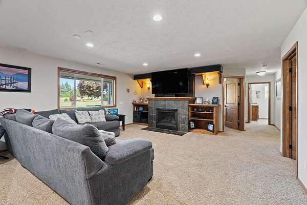 Amazing opportunity in Otis Orchards! Updated daylight rancher on 5.1 acres with territorial views. Open great-room layout with vaulted ceilings and newly remodeled upstairs-featuring fresh paint, updated flooring, kitchen remodel, and window-trim upgrades. Daylight basement includes 2 bedrooms, full bath, gas fireplace, wet bar, and walk-in fireproof gun safe. Enjoy a large deck, patio, and fire pit area. Attached 2-car garage plus 50' x 33' shop with loft, bonus room, and half bath with separate water heater. Additional 50' x 120' shop includes indoor pickleball court. Property also features a combo storage shed/chicken coop, fenced garden with deer-proof fencing. Horses and large animals allowed. No CCRs for HOA. Newer roof on home and shop.