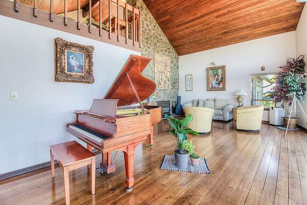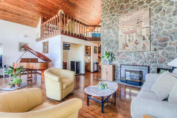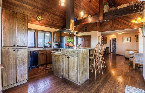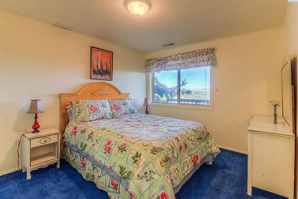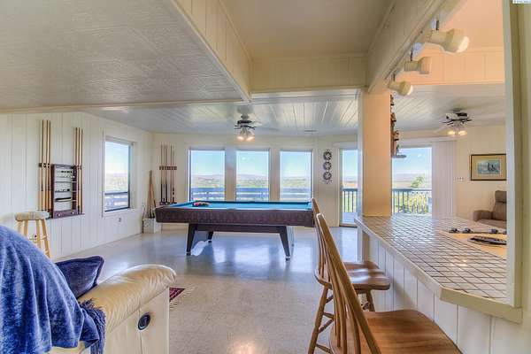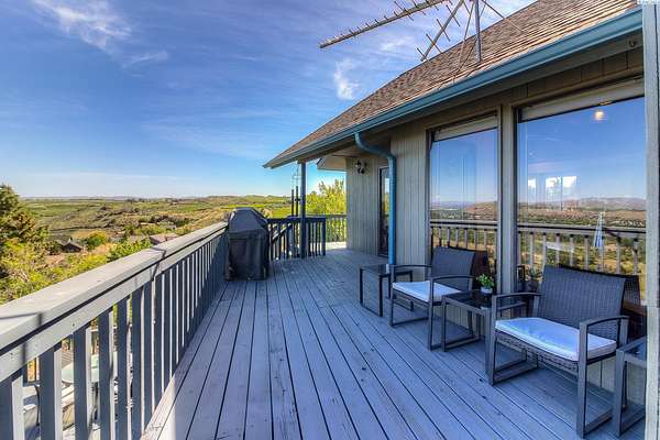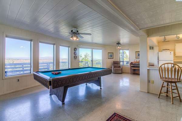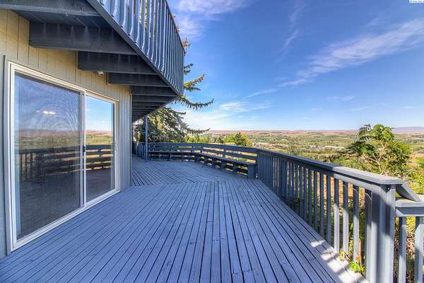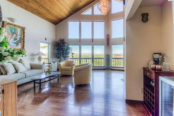 Imagine waking up to sweeping, unobstructed views of the Naches River—right from your own expansive two level deck. This custom 1980s home sits proudly at the top of the hillside in the private Basalt Springs community, offering rare privacy and a front row seat to nature’s beauty. A tucked away entrance leads into a charming, enclosed porch, the perfect spot to slip off your shoes before stepping inside. From the moment you enter, the A frame living room draws you in with its dramatic vaulted cedar ceilings, floor to ceiling Yakima rock fireplace, and stunning 180 degree views. It’s a space made for cozy evenings, good books, and memorable gatherings. The spacious kitchen continues the theme of light and scenery, featuring newer solid granite countertops, a raised island with bar seating, a glass top range with stainless vent hood, and effortless access to the upper deck for outdoor dining. There’s generous room for entertaining, plus a convenient washer and dryer tucked neatly into a closet. Down the hall, past a well placed half bath, awaits the grand primary suite. With cedar lined closets, vaulted wood ceilings, a jetted soaking tub, tiled shower, and private deck access, it’s a true retreat—perfect for stargazing before bed. Floating stairs lead to a lofted office or library overlooking both the living room and the river valley beyond. Sunsets from this perch are unforgettable. The lower-level lives like its own home, complete with a full kitchen, game room (pool table included), three bedrooms, abundant storage, flexible living space, and access to the lower deck. Outside, a three car garage houses 24 owned solar panels producing over 10,000 kWh annually—typically saving around $100 per month. The property also serves as a relay station for an internet service provider, giving the home complimentary high speed internet. Natural landscaping, underground sprinklers, terraced garden spaces, and a variety of fruit trees complete the setting. This one of a kind home offers privacy, views, and a lifestyle that feels like a retreat!