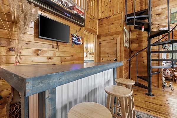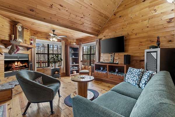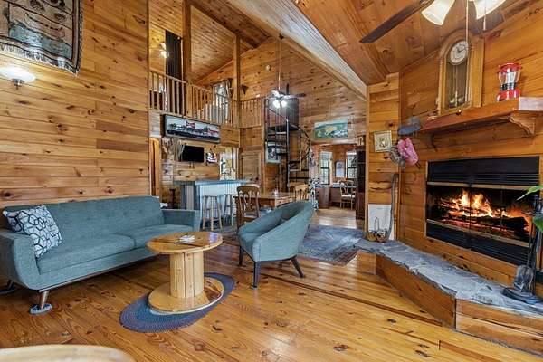 Tucked just minutes from the heart of the Aska Adventure Area, this inviting cabin offers the rare convenience of easy access with no steep mountain roads—just two simple turns off Aska Road and you're there. Inside, the 2-bedroom, 2-bath retreat radiates warm, uplifting energy. A striking spiral staircase winds upward to a spacious, open loft bedroom that feels like a private hideaway among the treetops. In the main living area, a charming built-in bar sets the tone for relaxed evenings where it truly feels like it's always five o'clock somewhere. The property itself is wonderfully gentle and usable, making it ideal for families, friends, or rental guests looking to unwind and explore. Whether you're seeking a personal getaway, a great place to park the RV or a strong short-term rental opportunity, this cabin offers a promising investment with plenty of mountain-town magic.