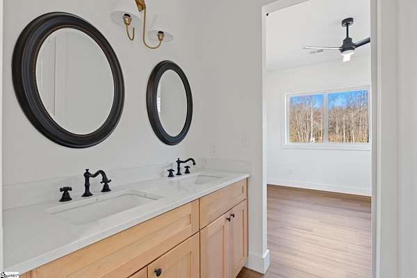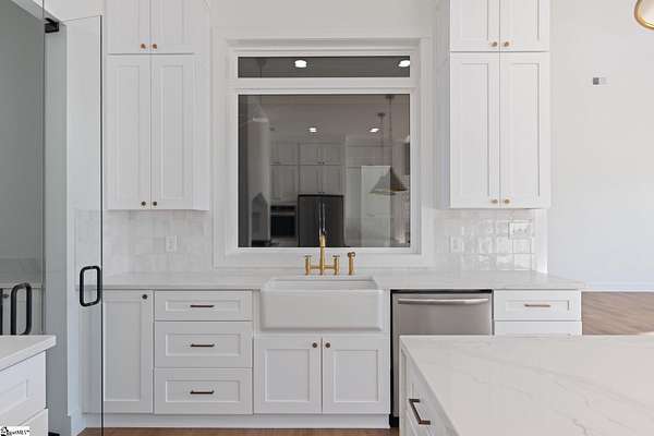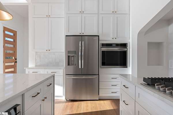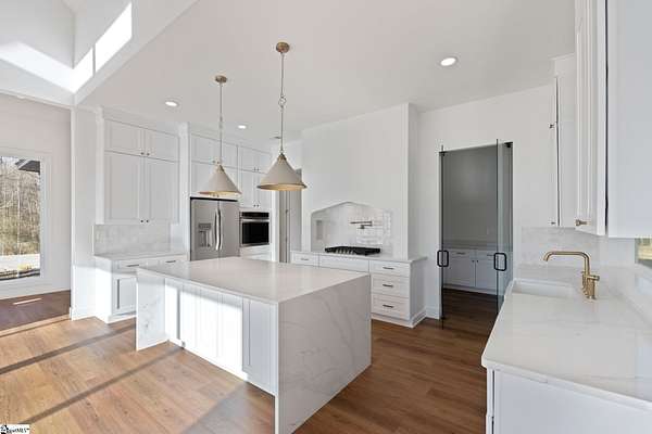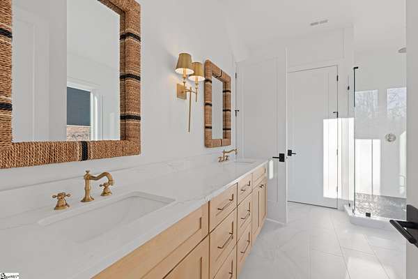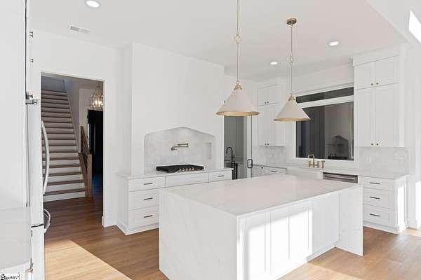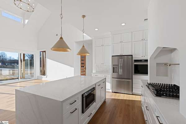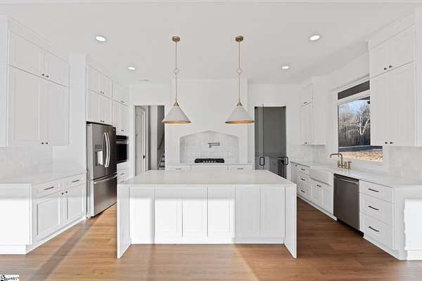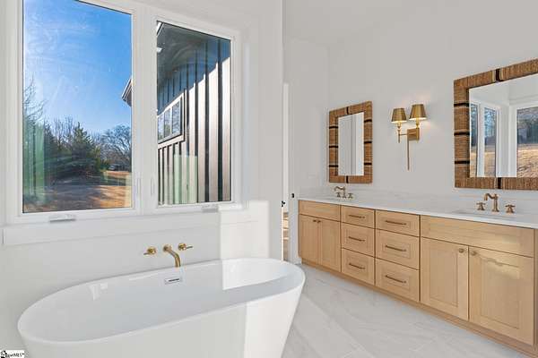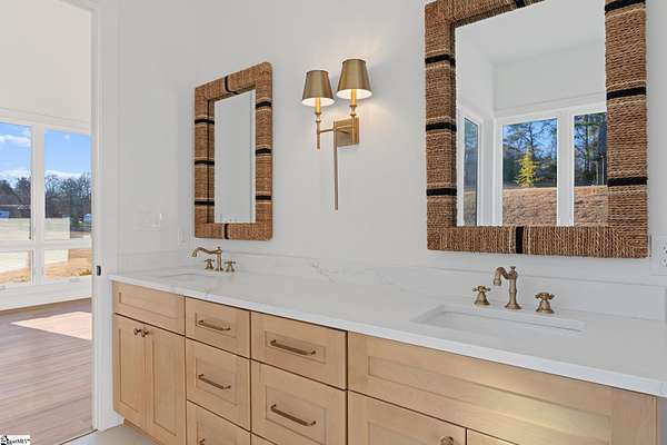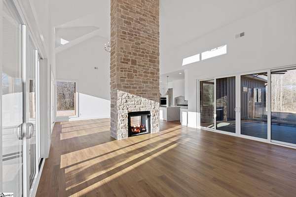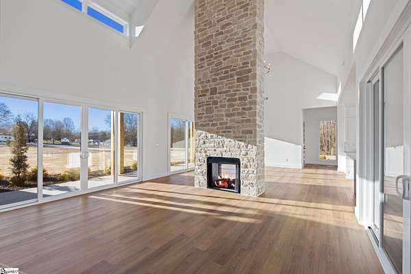 This home is offered by Blair Miller with Wilson Associates. Please contact Blair at 864.430.7708 or blair@wilsonassociates.net. Set on approximately five acres, 541 E Airport Road in Greer features nearly 3,200 square feet of brand-new, move-in-ready living, beautifully crafted by Blue Sky Builders. This four-bedroom, four-bath home features a functional layout, refined finishes, and a three-car attached garage, ideal for everyday living and entertaining. The kitchen is beautifully appointed with quartz countertops, a Zellige Perla polished ceramic backsplash, high-end Frigidaire appliances, a statement pot filler, and a matte brushed gold Vigo Cass faucet. A spacious butler's pantry provides excellent storage and prep space, while a striking double-sided fireplace anchors the main living areas. Designed for main-level living, the primary suite includes a generous walk-in closet with melamine closet shelving, dual vanities, a separate soaking tub, and a stunning tiled walk-in shower. Two additional bedrooms on the main level share a Jack-and-Jill bathroom, while another bedroom features its own private en-suite bath. Upstairs, a large flex space with a full bathroom offers versatility as a flex room or optional fifth bedroom. With expansive acreage, gorgeous design, quality craftsmanship, and ample garage space, this home presents a rare opportunity for new construction with generous acreage and comfort in a convenient Greer location. Schedule a chance to tour this amazing home today!