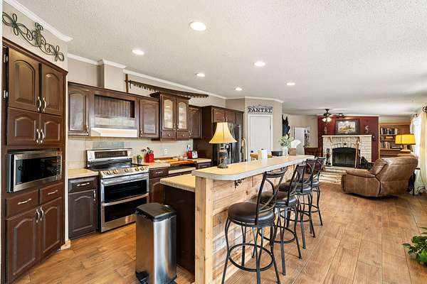 - Breakfast Bar, Ceiling Fan(s), Ceiling-Vaulted, Crown Molding, Open Floorplan, Walk-In Closet(s)