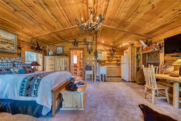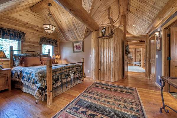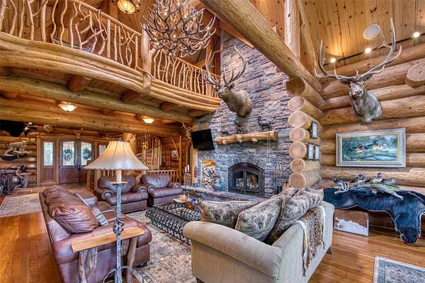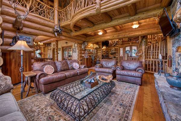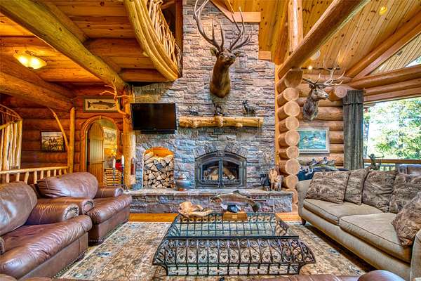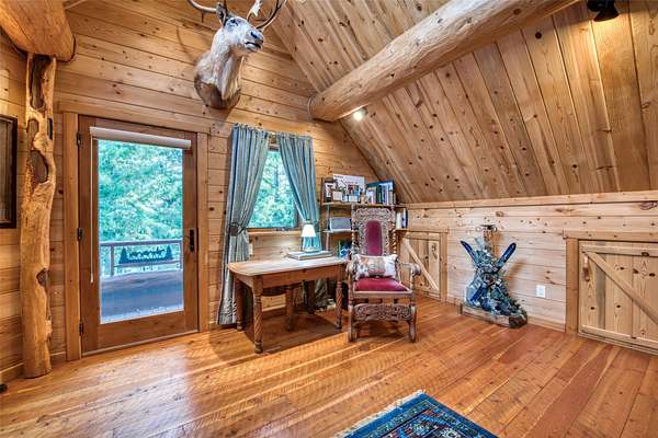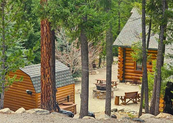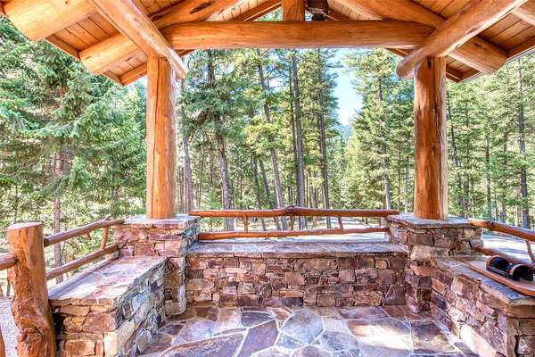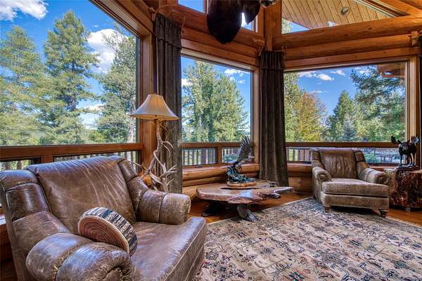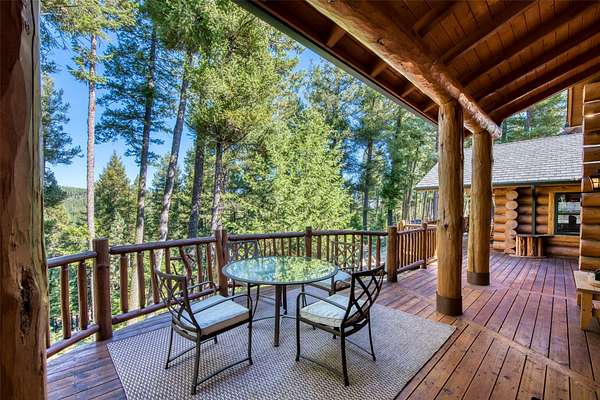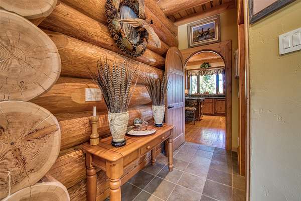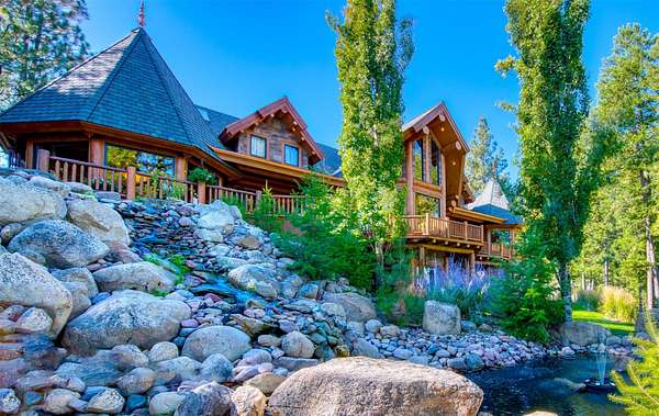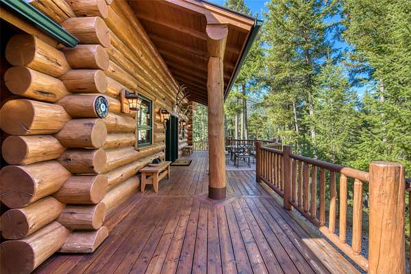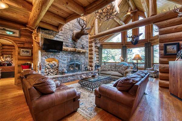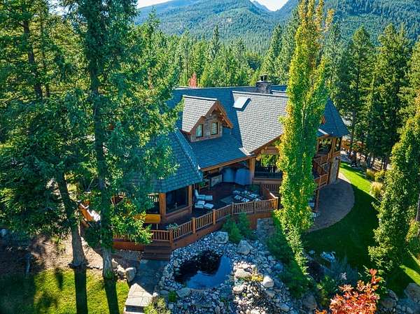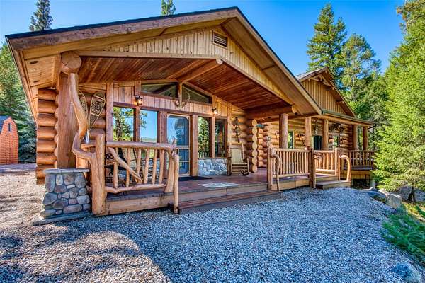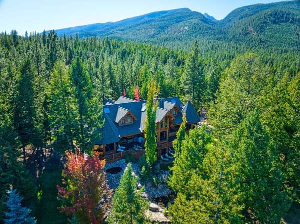 "Almost Heaven", a private luxury retreat located just minutes from downtown Darby. Your own personal reserve at this magnificent property. Elk, Deer, Turkeys, and Moose can be seen right here! In the Fall, you will hear Elk bugling. A total of 7,647 SF of living space. Custom 5,471 sf+/- log home 4 bed/4.5 bath with every amenity - Great Room, kitchen wing w/formal dining turret, expansive primary suite, game room, and ensuites. 2,176 sf+/- guest cabin w/attached newer event center. Artisan craftsmanship throughout with cooper gutters/downspouts and impressive porte-cochre entry. Gorgeous grounds and serene walking trails down to Little Tin Cup Creek. Beautiful cascading water features off the expansive deck and entertainment area at rear of home. Bitterroot/Sapphire Mountain Views. Year-round access and minutes to downtown with its quaint western atmosphere, the Darby Rodeo, restaurants, antique shops, library, gym and services. Featured on the Bitterroot Tour of Homes! "Almost Heaven" offers diversity of land type. Located near the end of Raven Wood Road in Darby, the property is very private and park-like. The custom and oversized log entry beckons you to see the unparalleled beauty beyond. The lighted driveway leads to the main porte-cochere entry that is very dramatic. The estate features mature Ponderosa Pines, Aspen, and many other varieties of trees. There are walking trails throughout the property and one special trail leading to the LIVE WATER of Little Tin Cup Creek. This cold-water creek flows from the high mountains in the Bitterroot Range through the canyon to the Valley floor below. Large waterfall over river rock and pond below. The property's park-like grounds invite evening strolls while preserving the general splendor of the Mountain views. The overall feeling of the property is a private lodge with the best Montana has to offer. The timbered areas of the property offer habitat for deer, turkey, elk, moose and other woodland wildlife. "Almost Heaven", a private luxury retreat located just minutes from downtown Darby. Your own personal reserve at this magnificent property. Elk, Deer, Turkeys, and Moose can be seen right here! In the Fall, you will hear Elk bugling. A total of 7,647 SF of living space. Custom 5,471 sf+/- log home 4 bed/4.5 bath with every amenity - Great Room, kitchen wing w/formal dining turret, expansive primary suite, game room, and ensuites. 2,176 sf+/- guest cabin w/attached newer event center. Artisan craftsmanship throughout with cooper gutters/downspouts and impressive porte-cochre entry. Gorgeous grounds and serene walking trails down to Little Tin Cup Creek. Beautiful cascading water feature off the expansive deck and entertainment area at rear of home. Bitterroot/Sapphire Mountain Views. Year-round access and minutes to downtown with its quaint western atmosphere, the Darby Rodeo, restaurants, antique shops, library, gym and services. Featured on the Bitterroot Tour of Homes! "Almost Heaven" offers diversity of land type. Located near the end of Raven Wood Road in Darby, the property is very private and park-like. The custom and oversized log entry beckons you to see the unparalleled beauty beyond. The lighted driveway leads to the main porte-cochere entry that is very dramatic. The estate features mature Ponderosa Pines, Aspen, and many other varieties of trees. There are walking trails throughout the property and one special trail leading to the LIVE WATER of Little Tin Cup Creek. This cold-water creek flows from the high mountains in the Bitterroot Range through the canyon to the Valley floor below. The main house features a beautifully planned water feature including a large waterfall over river rock and pond below. The property's park-like grounds invite evening strolls while preserving the general splendor of the Mountain views. The overall feeling of the property is a private lodge with the best Montana has to offer. The timbered areas of the property offer habitat for deer,