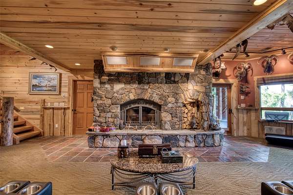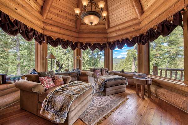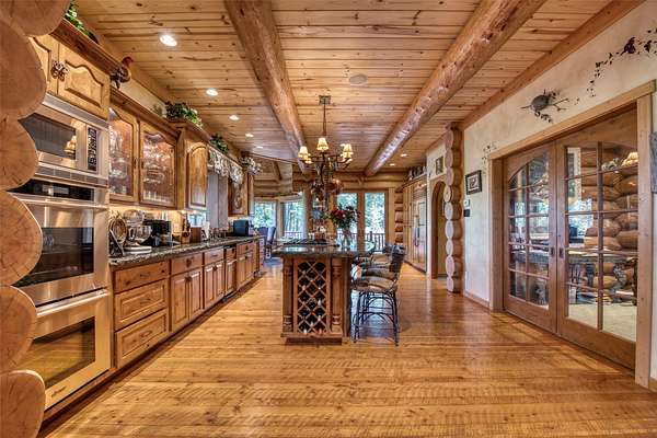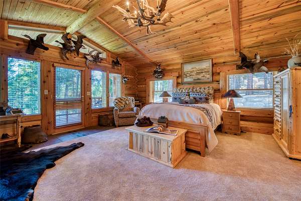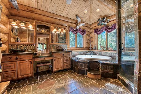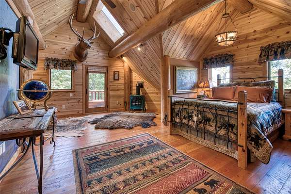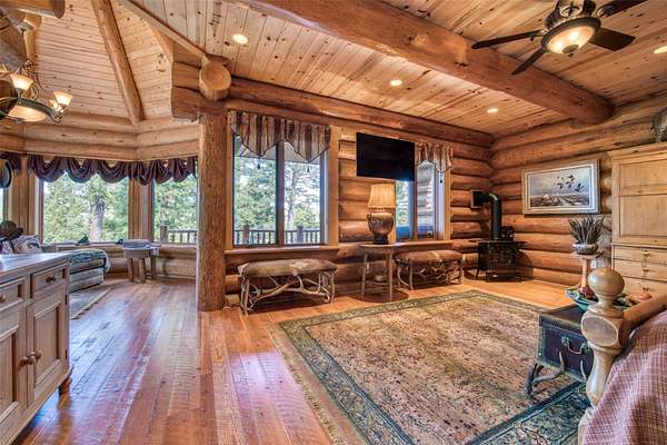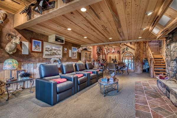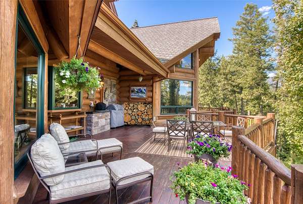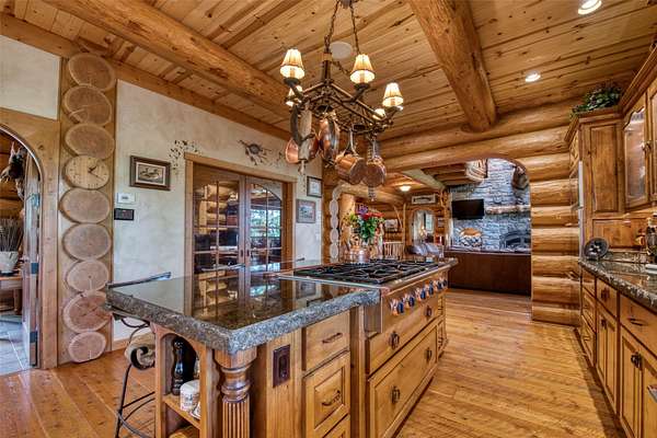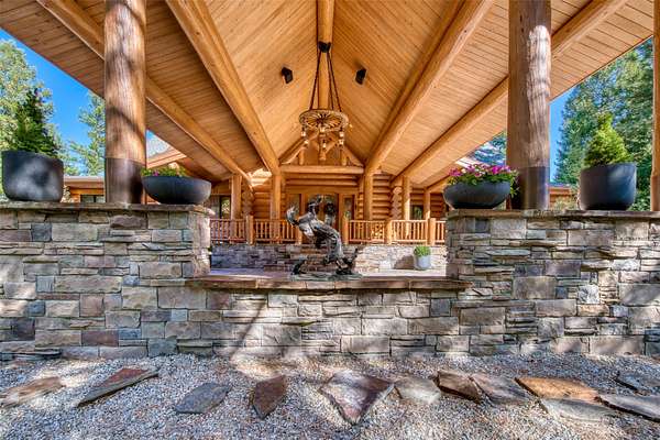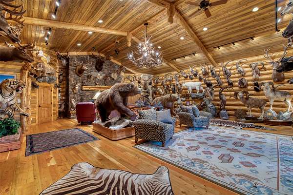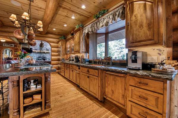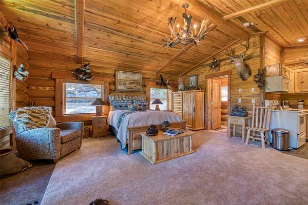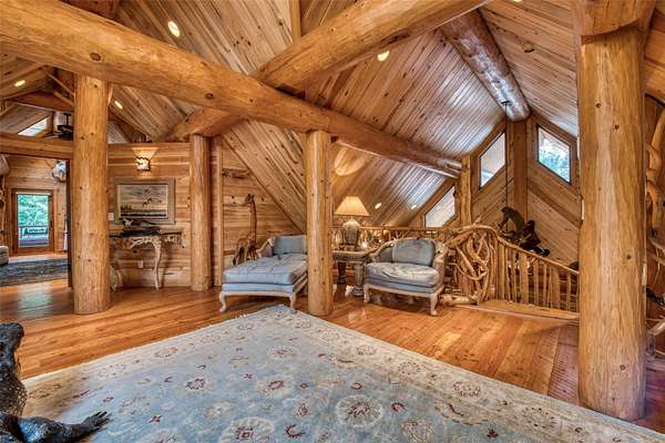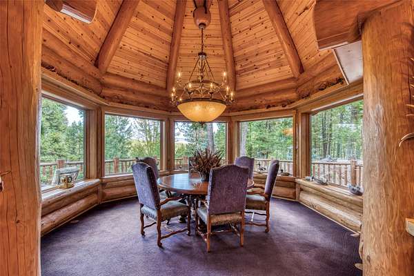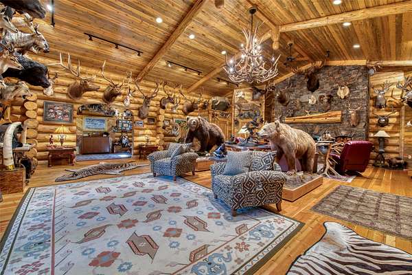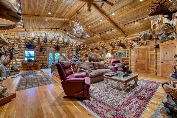 "Almost Heaven", a private luxury retreat located just minutes from downtown Darby. Your own personal reserve at this magnificent property. Elk, Deer, Turkeys, and Moose can be seen right here! In the Fall, you will hear Elk bugling. A total of 7,647 SF of living space. Custom 5,471 sf+/- log home 4 bed/4.5 bath with every amenity - Great Room, kitchen wing w/formal dining turret, expansive primary suite, game room, and ensuites. 2,176 sf+/- guest cabin w/attached newer event center. Artisan craftsmanship throughout with cooper gutters/downspouts and impressive porte-cochre entry. Gorgeous grounds and serene walking trails down to Little Tin Cup Creek. Beautiful cascading water features off the expansive deck and entertainment area at rear of home. Bitterroot/Sapphire Mountain Views. Year-round access and minutes to downtown with its quaint western atmosphere, the Darby Rodeo, restaurants, antique shops, library, gym and services. Featured on the Bitterroot Tour of Homes! "Almost Heaven" offers diversity of land type. Located near the end of Raven Wood Road in Darby, the property is very private and park-like. The custom and oversized log entry beckons you to see the unparalleled beauty beyond. The lighted driveway leads to the main porte-cochere entry that is very dramatic. The estate features mature Ponderosa Pines, Aspen, and many other varieties of trees. There are walking trails throughout the property and one special trail leading to the LIVE WATER of Little Tin Cup Creek. This cold-water creek flows from the high mountains in the Bitterroot Range through the canyon to the Valley floor below. Large waterfall over river rock and pond below. The property's park-like grounds invite evening strolls while preserving the general splendor of the Mountain views. The overall feeling of the property is a private lodge with the best Montana has to offer. The timbered areas of the property offer habitat for deer, turkey, elk, moose and other woodland wildlife. "Almost Heaven", a private luxury retreat located just minutes from downtown Darby. Your own personal reserve at this magnificent property. Elk, Deer, Turkeys, and Moose can be seen right here! In the Fall, you will hear Elk bugling. A total of 7,647 SF of living space. Custom 5,471 sf+/- log home 4 bed/4.5 bath with every amenity - Great Room, kitchen wing w/formal dining turret, expansive primary suite, game room, and ensuites. 2,176 sf+/- guest cabin w/attached newer event center. Artisan craftsmanship throughout with cooper gutters/downspouts and impressive porte-cochre entry. Gorgeous grounds and serene walking trails down to Little Tin Cup Creek. Beautiful cascading water feature off the expansive deck and entertainment area at rear of home. Bitterroot/Sapphire Mountain Views. Year-round access and minutes to downtown with its quaint western atmosphere, the Darby Rodeo, restaurants, antique shops, library, gym and services. Featured on the Bitterroot Tour of Homes! "Almost Heaven" offers diversity of land type. Located near the end of Raven Wood Road in Darby, the property is very private and park-like. The custom and oversized log entry beckons you to see the unparalleled beauty beyond. The lighted driveway leads to the main porte-cochere entry that is very dramatic. The estate features mature Ponderosa Pines, Aspen, and many other varieties of trees. There are walking trails throughout the property and one special trail leading to the LIVE WATER of Little Tin Cup Creek. This cold-water creek flows from the high mountains in the Bitterroot Range through the canyon to the Valley floor below. The main house features a beautifully planned water feature including a large waterfall over river rock and pond below. The property's park-like grounds invite evening strolls while preserving the general splendor of the Mountain views. The overall feeling of the property is a private lodge with the best Montana has to offer. The timbered areas of the property offer habitat for deer,