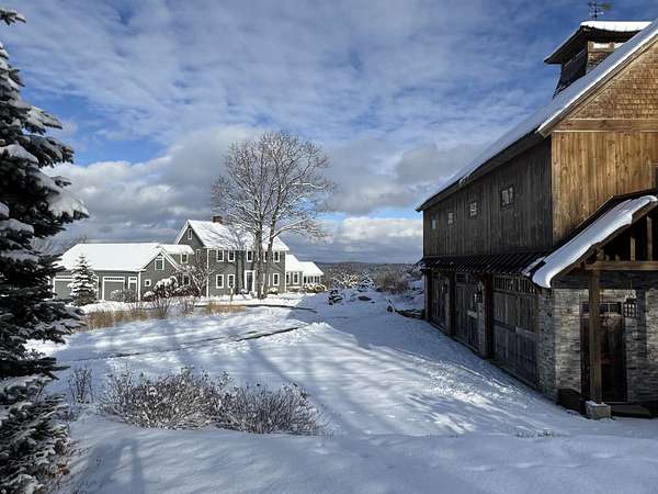 The perfect blend of privacy, convenience, and four-season recreation. Set on a beautiful 25-acre lot with breathtaking views, the property is an easy commute to Concord, Hanover and Boston and just minutes from two popular ski areas, Pats Peak in Henniker and Mount Sunapee. This stunning 5-bedroom, 4.5-bath Colonial is surrounded by professionally landscaped grounds. Enjoy spacious, sun-filled rooms across three finished levels. The custom cherry kitchen opens to the family room with wood beams and a fieldstone fireplace. The first floor also includes a screened porch, office with fireplace, mudroom, and laundry. Second floor includes a primary bedroom suite, two more bedrooms, and a full bath. Over the 3-car garage is a guest apartment with a kitchen, bath, bedroom, and large living room. The lower level adds a gym, game room, theater, bedroom, and bath with access to a patio and saline Gunite pool. The highlight is a c.2017 entertainment barn, beautiful and versatile, with hand-hewn beams, reclaimed wood, pine floors and ceiling, and expansive sliding glass doors that open to rolling views. The space is a master class in modern rustic elegance with Scandinavian influences including the sleek kitchen featuring two long counters, one with a striking full-height stone backsplash, luxury appliances, limestone floors, and a walk-in pantry. The barn also includes a woodstove, half bath, heated chicken coop, cupola, 3-large bays underneath and south side roof solar panels.