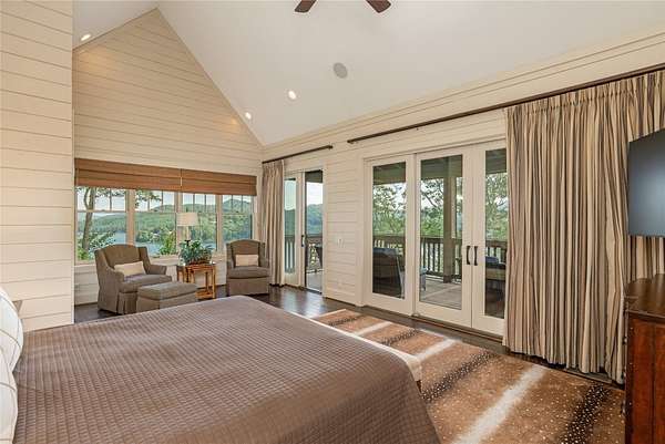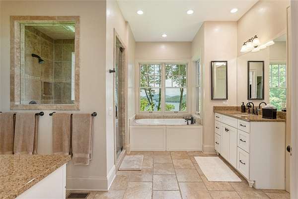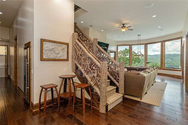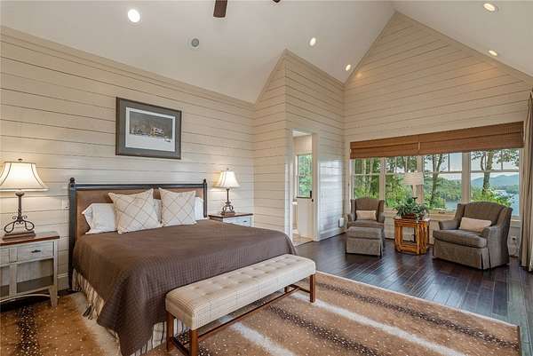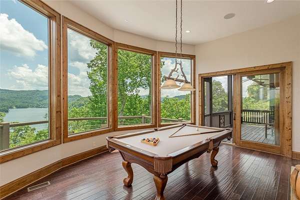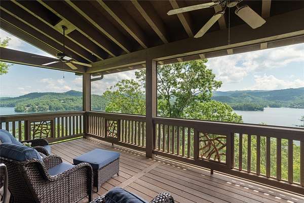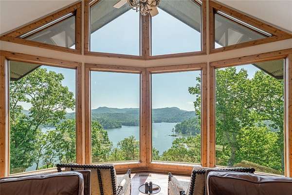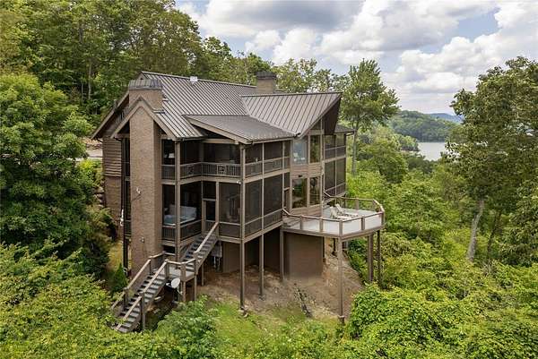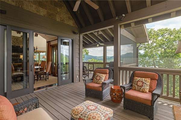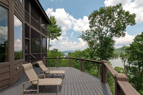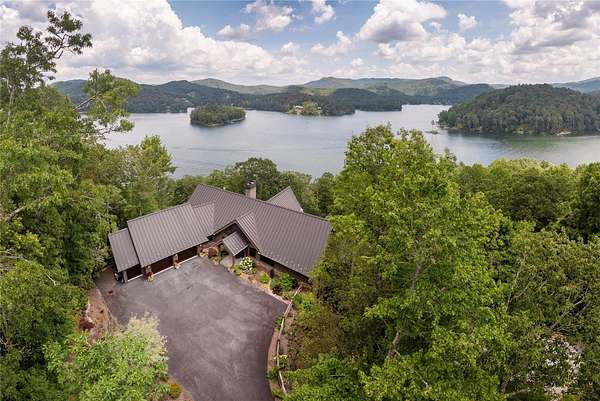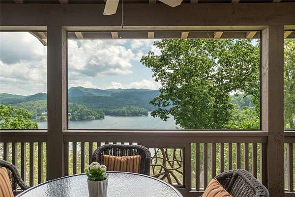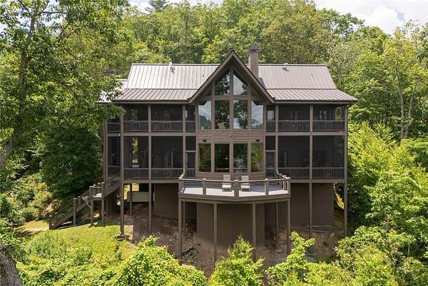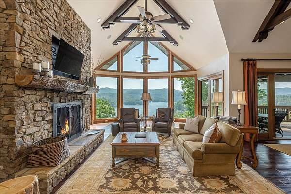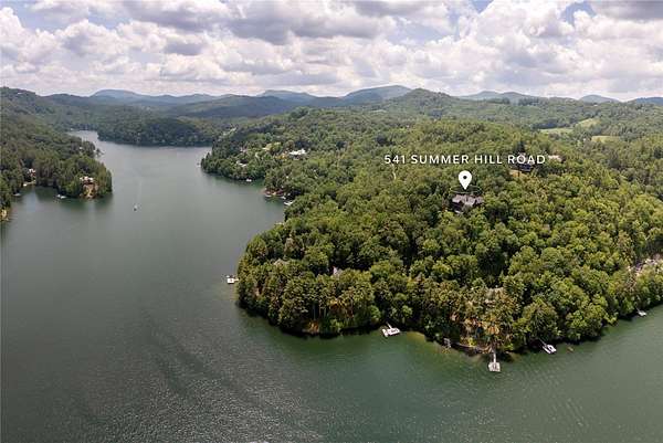 Nestled in the prestigious Summer Hill community overlooking the serene waters of Lake Glenville, this custom-built residence epitomizes refined mountain living. Set on two expansive lots to ensure privacy, the home offers breathtaking 180-degree views of the shimmering lake and majestic surrounding mountains from nearly every room. Beautiful vistas for as far as you can see. Enjoy boating, a day at the beach with private docks and sand, or fishing in the clear, fresh waters of Lake Glenville. The great room serves as the heart of the home, featuring soaring vaulted ceilings and a grand stone fireplace that frames the panoramic vistas. Adjacent, the gourmet kitchen is a chef's dream, equipped with a gas range, central island, and premium French-door refrigerator, all complemented by rich cabinetry and elegant countertops. The main-level primary suite provides a tranquil retreat with a screened sleeping porch ideal for enjoying the cool mountain evenings. The ensuite bath boasts a steam shower, jetted soaking tub, dual vanities with ample storage, and heated flooring for ultimate comfort. Designed for seamless indoor-outdoor living, the home features multiple screened porches and expansive open decks, perfect for savoring the crisp mountain air and captivating lake views throughout the seasons. The lower-level deck is an entertainer's delight, hosting a welcoming hot tub and an outdoor fireplace for gatherings under the stars. The residence's lower level caters to guests and entertainment, offering three spacious guest suites, a generous family room with a dedicated game area, a convenient kitchenette, and a private office. An impressive home theater with plush seating and state-of-the-art surround sound promises exceptional cinematic experiences. Starting with the drive through this well-maintained community and continuing up the private 300-foot entrance, you will know you have arrived at a very special home. Since the last ownership, extensive landscaping and many improvements have made this one of the most complete homes available inside and out. Residents of Summer Hill enjoy deeded lake access, a community dock, a charming outdoor pavilion, and gated security. Recent upgrades to the home include a Cummins generator, lush landscaping, and modern railings, enhancing both functionality and aesthetic appeal. Embrace a serenity, elegance, and natural beauty lifestyle in one of Lake Glenville's most coveted communities.