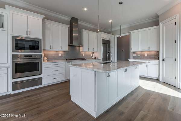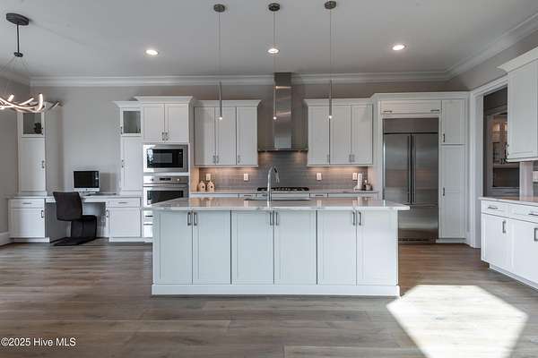Luxury, craftsmanship, and privacy converge at 541 White Horse Drive-an exquisite estate built by premier builder John Paul Corey, set on a sprawling 2.38-acre lot in Greenville's prestigious Rock Springs community. With 5 bedrooms, 4.5 bathrooms, and 4,641 sq ft of masterfully designed living space, this custom home offers timeless elegance and modern comfort in one of Eastern North Carolina's most sought after neighborhoods. Every detail has been thoughtfully curated-from the foyer and soaring ceilings to the extensive millwork, grand openings, and rich wood flooring throughout the main living areas. The expansive great room features a stunning fireplace and built-ins, seamlessly connecting to the chef's kitchen with custom cabinetry, high-end appliances, quartz countertops, and a large center island perfect for entertaining. This masterpiece offers over-the-top luxury with a thoughtful blend of elegance, function, and comfort. Boasting 5 spacious bedrooms, including 2 on the main level with private en-suite bathrooms, this home offers ideal accommodations for multi-generational living. The first-floor primary suite is a luxurious retreat, complete with a spa-like bath, oversized tile shower, soaking tub, dual vanities, and a custom walk-in closet. Upstairs, you'll find 3 additional bedrooms, two of which also feature private en-suites. Entertain with ease in the sun-drenched sunroom, formal dining room, and inviting den, all crafted with fine finishes and timeless design. The outdoor kitchen complements the insulated, climate-controlled 3-car garage, perfect for gatherings year-round. Beyond the home, enjoy exclusive access to Rock Springs' unmatched amenities, including a resort-style pool and spa, with poolside snack bar, horseback riding trails, and hiking paths, offering a lifestyle that's both luxurious and adventurous. This is more than a home-it's an experience. Discover elevated living at 541 White Horse Drive, where craftsmanship meets community.