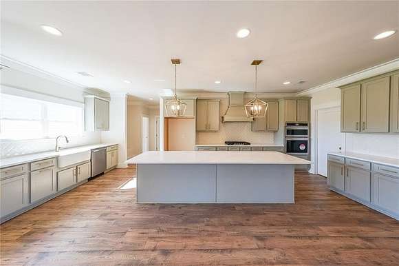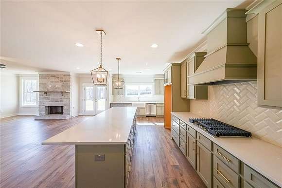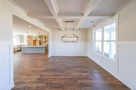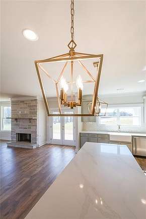Greeted by an inviting front porch, you'll enter the foyer as well as formal dining room with coffered ceiling and beautiful detailed molding. The fireside family room with stacked stone fireplace leads you to a spacious and warm chef's kitchen, which boast large island with plenty of seating, gorgeous shaker cabinets painted SW Chatroom, quartz countertops, stainless steel 5 burner gas cooktop, built in micro/oven, herringbone backsplash , the most perfect view from the window at the farmhouse sink and oh THE PANTRY, WOW it's a must see!!! The French door off the family room leads to a vaulted covered porch with outdoor living space featuring a third fireplace overlooking a private backyard for all to enjoy. The main level master bedroom features wood floors and a generous spa like ensuite with walk-in closet large vanity with quartz countertops, free standing soaking tub, tiled shower with frameless glass door. On the opposite side of the home, you'll find 2 guest bedrooms, which share a Jack n Jill bath! THIS RANCH HOME IS A MUST SEE!!!!