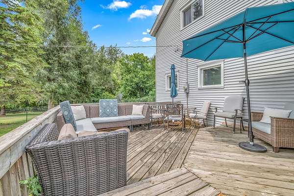 Welcome to your dream property in the heart of Hillsdale County - a beautifully remodeled 3-bedroom, 1-bath farmhouse perfectly situated on 5+ picturesque acres. Offering over 1,600 sq ft of comfortable living space, this home seamlessly blends modern updates with classic country charm. Step inside to a stunning galley-style kitchen featuring granite countertops, rich wood plank flooring, and fresh, modern finishes. Enjoy year-round comfort with a spacious three-season room and the peace of mind of a 200-amp electrical system, new paint, and an Ayers Basement Waterproofing System with a transferable warranty. Outdoors, the property is a haven for animal lovers and hobby farmers alike, boasting a horse barn with 5 box stalls, a fenced pasture with electric and lighting in the barns for safety during late-night chores. A detached 2-car garage offers plenty of space for vehicles, tools, and storage. From the private deck, take in breathtaking views of southern Michigan's rolling hills while enjoying the serenity of your surroundings. With plenty of space for pets, a large garden, and endless outdoor activities, this is truly country living at its finest all just a short drive from town amenities.