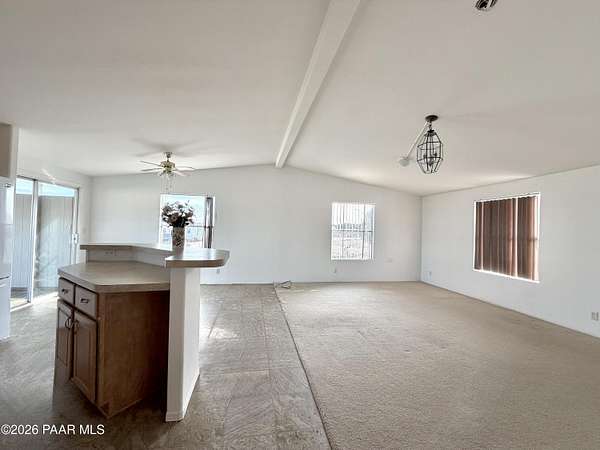 From Seligman, head west 1.1 miles on Route 66. Turn left onto Fort Rock Rd and continue 2.2 miles. Turn right onto Bridge Canyon Pkwy and drive 3 miles. Turn left onto Mariposa Ln. The home is on the left just before the end of the cul-de-sac.