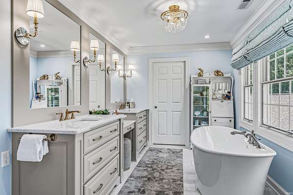 - Alarm System-Security, Breakfast Bar, Built-In Bookcase, Ceiling-Tray, Ceilings-Beamed, Closet(s) Walk-In, Countertops-Solid Surf, Crown Molding, Custom Cabinetry, Deck Open, Detector-Smoke, Dishwasher, Disposal, Dryer Hook Up Electric, Eat-In Kitchen, Formal Dining Room, Foyer Entry, Garage Door Opener, Garage-Heated, Great Room, Irrigation System, Jack & Jill Bath, Jet/Garden Tub, Kitchen Island, Landscaped, Main Floor Laundry, Main Level Bedroom Suite, Pocket Doors, Porch Covered, Range/Oven Hook Up Elec, Refrigerator, Sump Pump, Sump Pump+battery Backup, Twin Sink Vanity, Utility Sink, Washer Hook-Up, Water Heater Gas, Water Softener-Owned