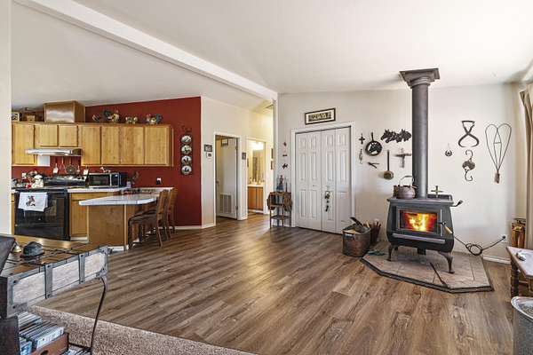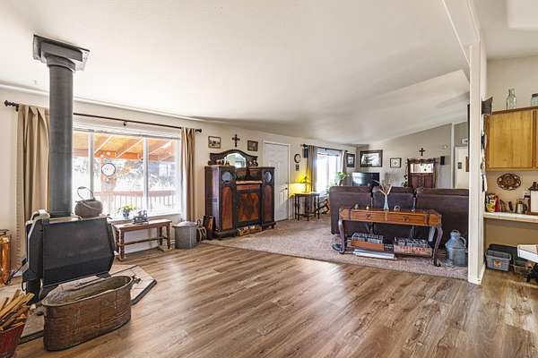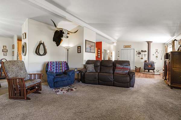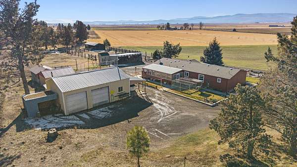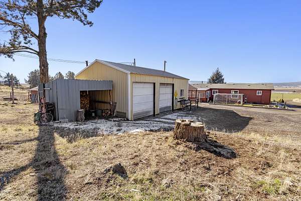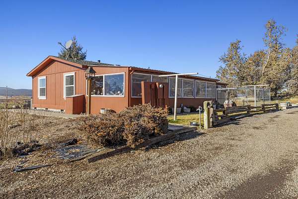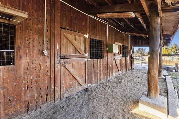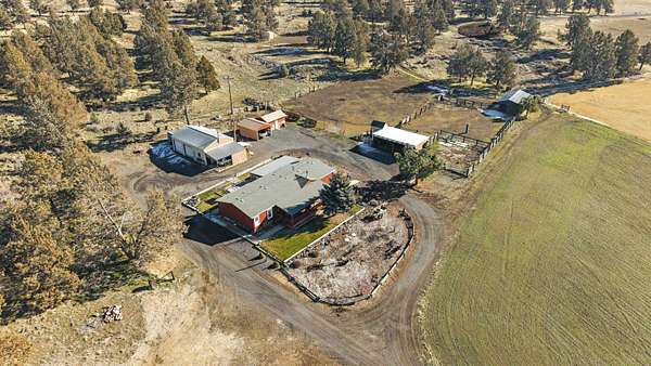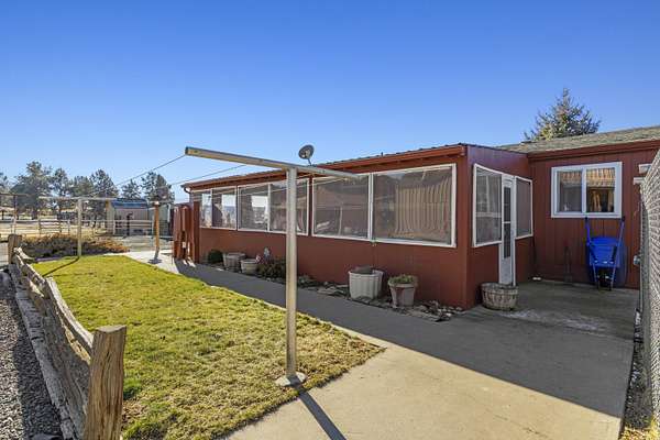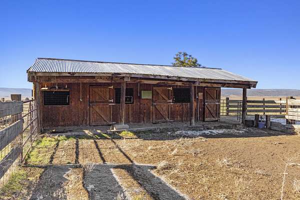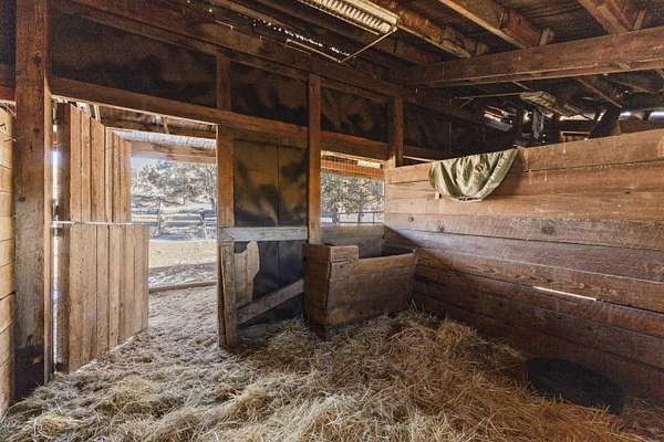 Great horse property with 3 nice horse stalls, tack room and 3 separate corrals on almost 40 acres. Property features: completely fenced; has a 2 bay shop with workshop, electric and an attached carport; another carport (could be garage); conex storage container; equipment/wood storage building; and a new septic and leach field in 2022. The home interior was completely painted in 2022 and exterior was painted in 2024. Roof was installed in 2013. 17 acres are planted in dry land hay. Hay will not convey with the sale. The home features: 3 bedrooms, 2 baths; an open floor plan; all new flooring; new kitchen stove and hood; new toilets; large covered deck on the front and a large enclosed sunroom on the back with lots of removable windows with screens to let in the fresh air. Home has, heat pump, A/C and a Blaze King woodstove to keep you cozy in the winter. Property has been cleaned up, trees trimmed, garage door fixed and is ready for a new owner.