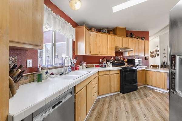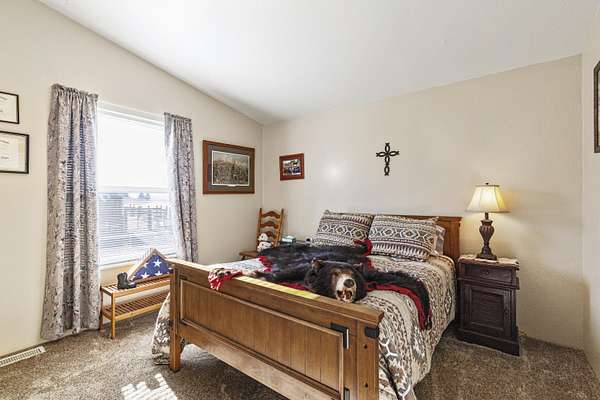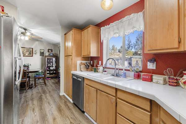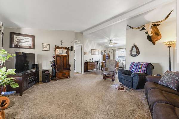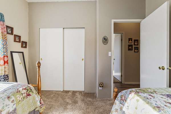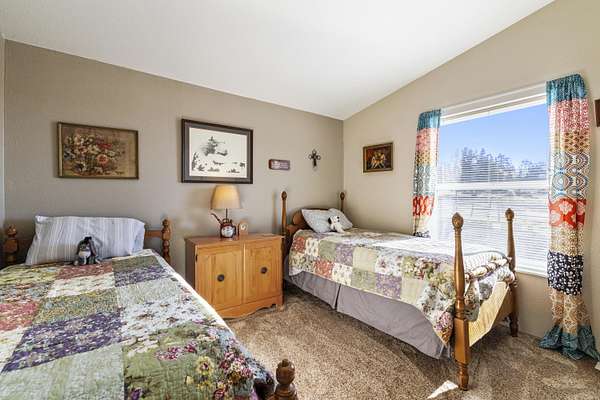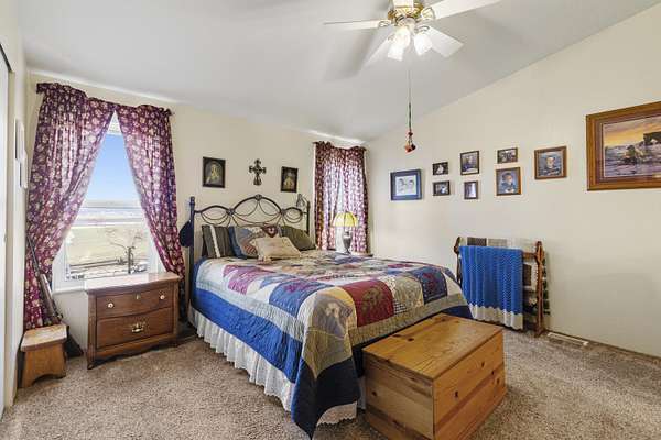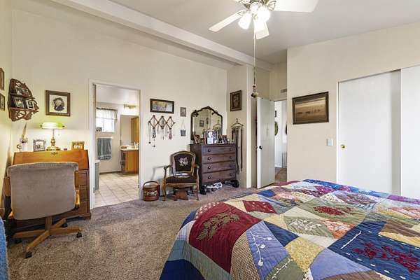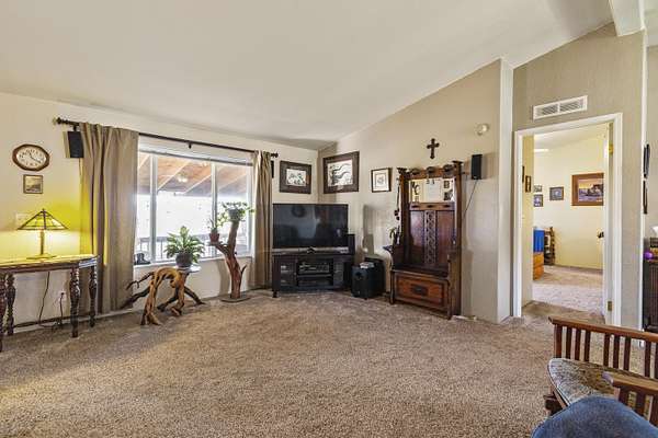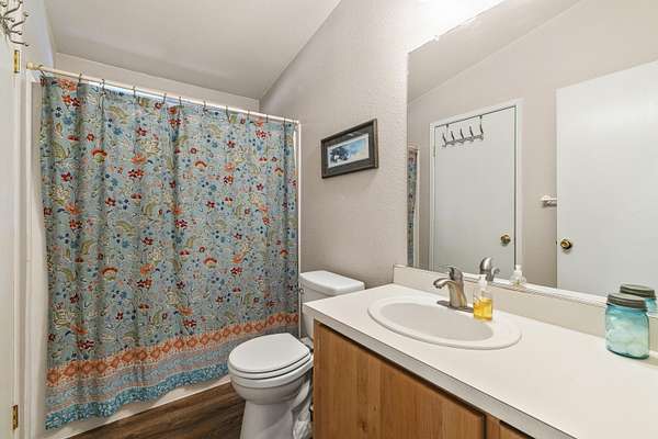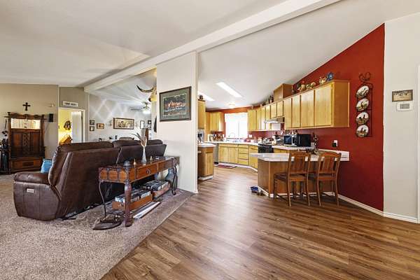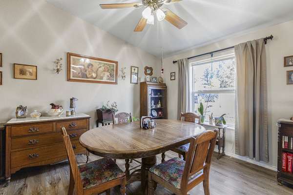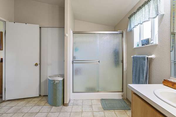 - Ceiling Fan(s), Laminate Counters, Linen Closet, Open Floorplan, Primary Downstairs, Shower/Tub Combo, Vaulted Ceiling(s)
