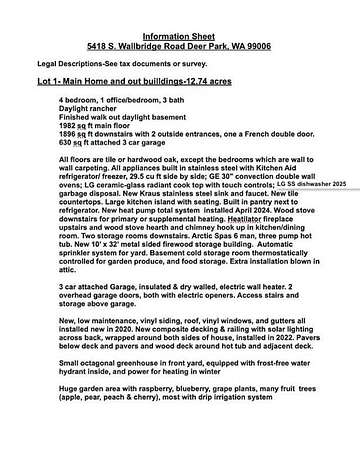 Bring all your animals and enjoy country living. Self sustain on your working ranch and farm that is all set up for you...just move in. Enjoy territorial views in a setting of peace and serenity on 25.20 acres located on the Wild Rose Prairie. Raise animals with room to roam, have your garden & fruit trees, and yet be minutes on paved roads to Deer Park and North Spokane amenities. Also perfect for multi-generational living, guest house, or rental income potential. This property includes a large main home (3878 sf) 4 large bedrooms/3 baths/office/3 car attached garage, 40x60 shop w/office/bath/200 amp/heaters/wood stove/drive thru w/12' roll up doors. 54x40 barn w/loft/200 amp, cross fenced for a variety of separation options, woven wire/electric fencing. 16x24 small barn. Green house, chicken house, fenced garden, multiple frost free hydrants. ADU MH (1,144 sf) 2 beds/office/2 baths. This property is subdivided into 3 parcels. Maybe sell the vacant land parcel, or add another home to produce income.