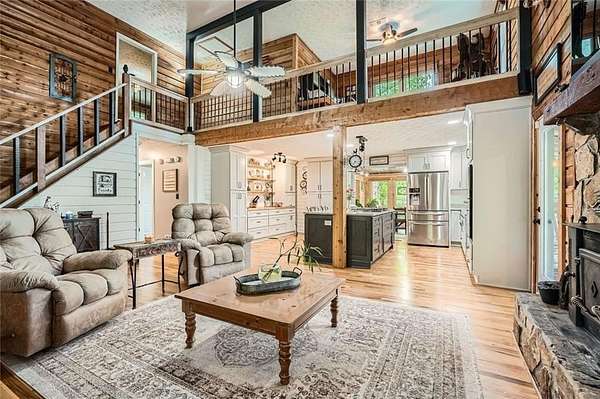 Spring has arrived, and the azaleas are going to be in full bloom at this breathtaking lakefront retreat. Set on more than 6 acres of scenic beauty, this exceptional property perfectly blends the charm of peaceful country living with the convenience of nearby city access. Located just 5 miles from I-20 and only 22 miles from downtown Atlanta, youll enjoy tranquil privacy without sacrificing connectivity.As you arrive, you're welcomed by a circular drive, ample paved parking, and a spacious wraparound porchperfect for relaxing and taking in the fresh spring air and views of the surrounding landscape. Whether you're entertaining guests, unwinding in the jacuzzi hot tub, or enjoying a quiet morning coffee while the flowers bloom, this home offers the ideal setting.Inside, the dramatic two-story great room features soaring ceilings, abundant natural light, and expansive views of the propertys private spring-fed lake, complete with a fountain and dock. The open-concept layout flows seamlessly into the beautifully updated kitchen with granite countertops, modern appliances, and generous cabinetryperfect for both everyday living and entertaining.A spacious loft overlooks the main living area and provides flexible space ideal for a home office, reading nook, or guest retreat. The home offers 3 well-sized bedrooms, flex space and 2 full and a half bath, plus a finished basement that expands your living optionsperfect for a media room, gym, playroom, or additional bedroom.Outdoor enthusiasts, equestrians, and hobby farmers will appreciate the large garage/workshop, storage shed, and functional chicken coop with fenced areas already in place. The property is dotted with mature trees, vibrant seasonal landscaping, and open spaces ready for pets, livestock, or gardening.Enjoy life by the lakefish from your private dock, host sunset gatherings by the water, or simply take in the peaceful surroundings as spring unfolds across the property.With top-rated schools nearby and quick access to major roads, this rare lakefront retreat offers space, beauty, and convenience all in one extraordinary property.All thats missing is you. Schedule your private tour today and experience the magic of this one-of-a-kind lakefront escape.