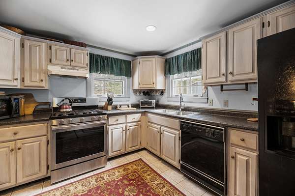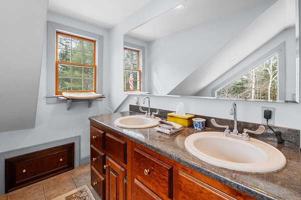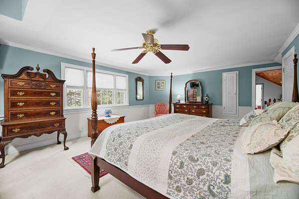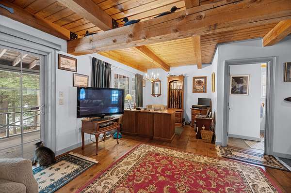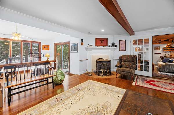 Welcome to your private waterfront retreat on Evans Pond--where craftsmanship, nature, and lifestyle come together. From the moment you step through the front door of this handsome, dormered Cape-Cod style home, you're greeted with a breathtaking sightline straight through the home to beautifully landscaped, park-like grounds and peaceful water views. It's the kind of first impression that never gets old. The kitchen is warm and inviting, featuring a soaring cathedral ceiling with natural pine and skylights that flood the space with light. It's perfectly designed for slow mornings or hosting unforgettable gatherings. The main living area also offers a screened porch, and a spacious great room with a sunken sunroom, built-in shelving, and a wood stove hookup--ideal for cozy Maine evenings. Upstairs, you'll find three bedrooms, all with water views, including an oversized 325 sq ft primary suite with dual closets--your own quiet escape overlooking the pond. Outside, the possibilities expand even further, including: An oversized garage with room for two vehicles; Heated woodworking shop with its own bathroom; Two horse stalls with access to paddocks; Bonus space above the garage ready to become an in-law suite (subject to town approval and septic expansion); and a finished, heated bunkhouse with storage. Whether you're looking for a year-round home, a home for you and your horses, or waterfront getaway, this one offers a rare combination of privacy, versatility, and lifestyle.