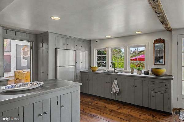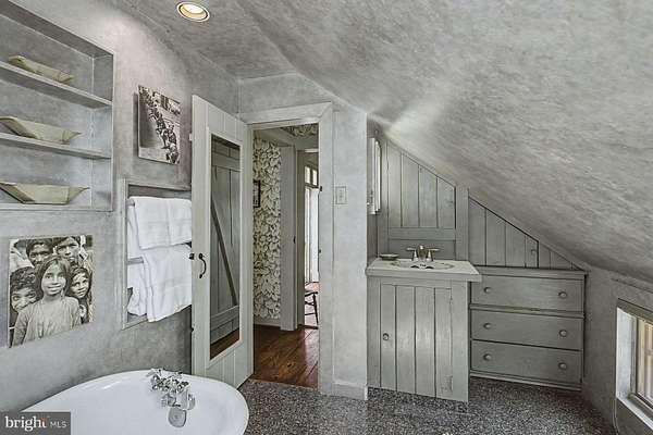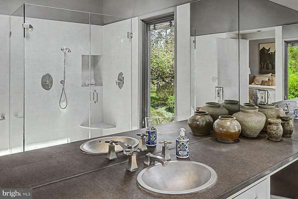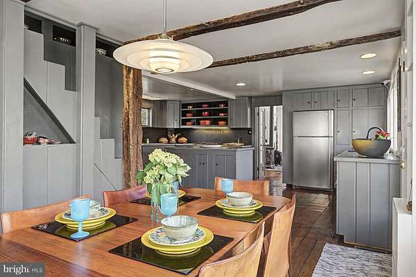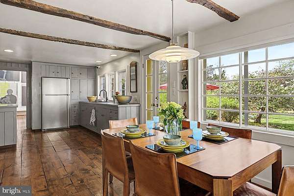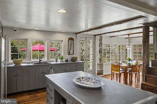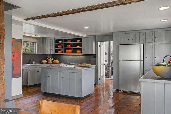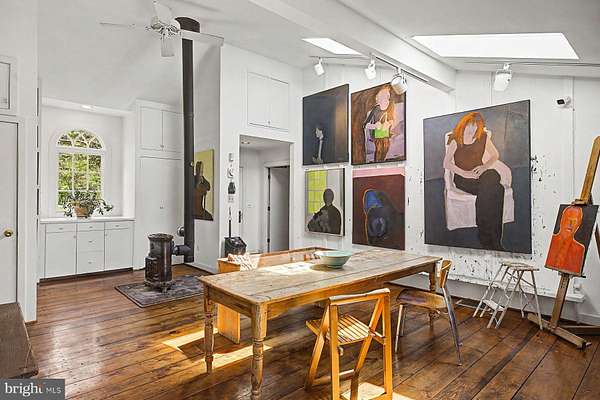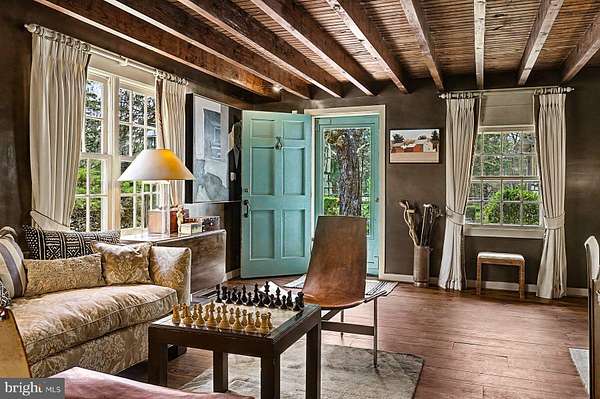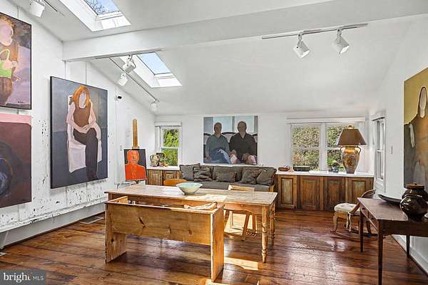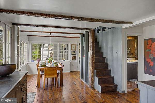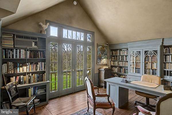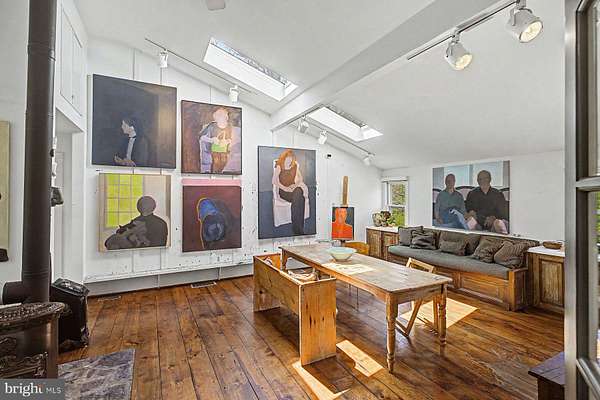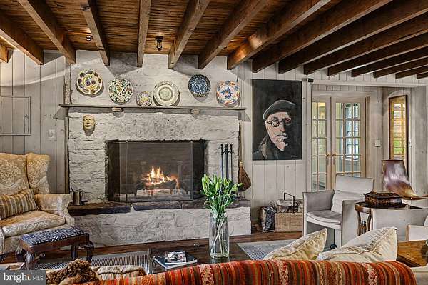 Tucked quietly along a winding drive in the heart of Tinicum Township, this enchanting Bucks County residence offers a rare blend of character, flexibility, and privacy on a beautifully landscaped setting. A series of thoughtfully connected living spaces creates a uniquely versatile floor plan, ideal for today's evolving lifestyles. Multiple entrances and distinct wings provide natural separation for guests, extended family, or work-from-home arrangements, while maintaining a cohesive and inviting flow throughout the home. Rich in architectural detail, the interiors showcase wide-plank wood floors, exposed beams, deep-set windows, and a striking stone fireplace anchoring one of several gathering spaces. Natural light pours into the home's studio and living areas, enhancing its warm, artistic ambiance. The kitchen and baths are functional and full of charm, offering an excellent opportunity for future customization. Generous bedroom accommodations are thoughtfully distributed across the home, providing comfort and privacy. Outdoors, mature trees, curated plantings, and meandering pathways create a peaceful, park-like setting. The property's sense of seclusion is complemented by its proximity to the Delaware River, canal towpath, and the beloved villages and amenities of Upper Bucks County. A truly special offering-equally suited as a full-time residence, weekend retreat, or multi-generational living opportunity-this is a property that invites both quiet enjoyment and inspired living.