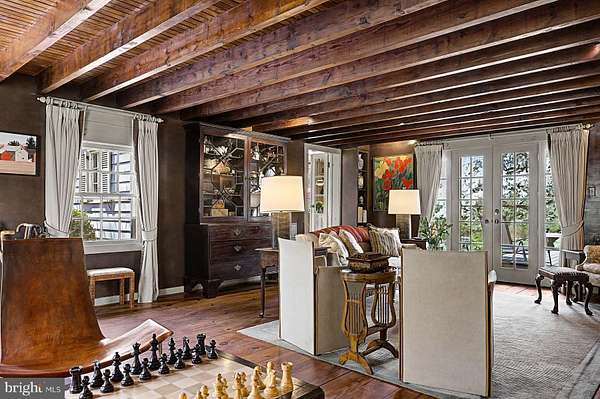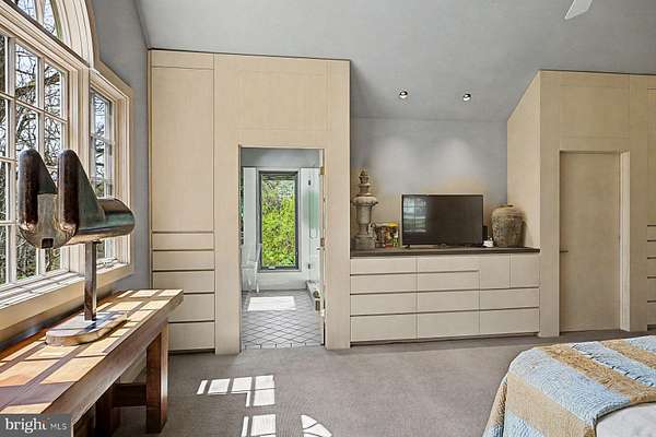 - Built-Ins, Cedar Closet(s), Ceiling Fan(s), Coal Stove, Combination Kitchen/Dining, Country Kitchen, Dining Area, Eat-In Kitchen, Entry Level Bedroom, Exposed Beams, Island Kitchen, Jetted Tub Bathroom, Pantry, Primary Bath(s), Recessed Lighting, Skylight(s), Soaking Tub Bathroom, Studio, Table Space Kitchen, Traditional Floor Plan, Tub Shower Bathroom, Walk-In Closet(s), Walk-In Shower Bathroom, Whirl Pool/Hot Tub, Window Treatments, Wood Floors