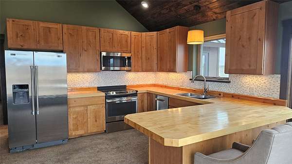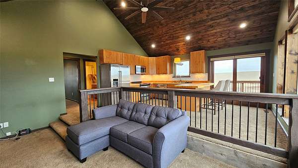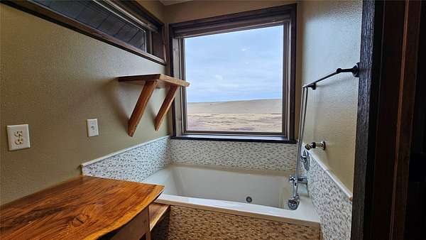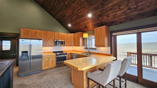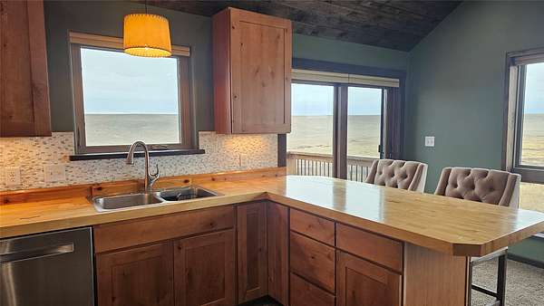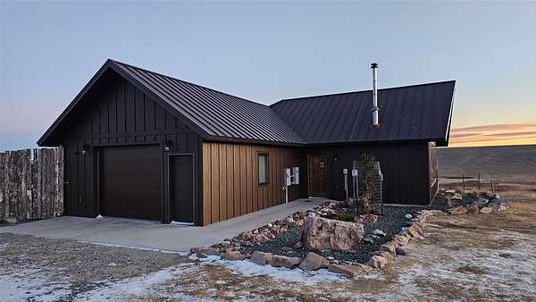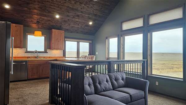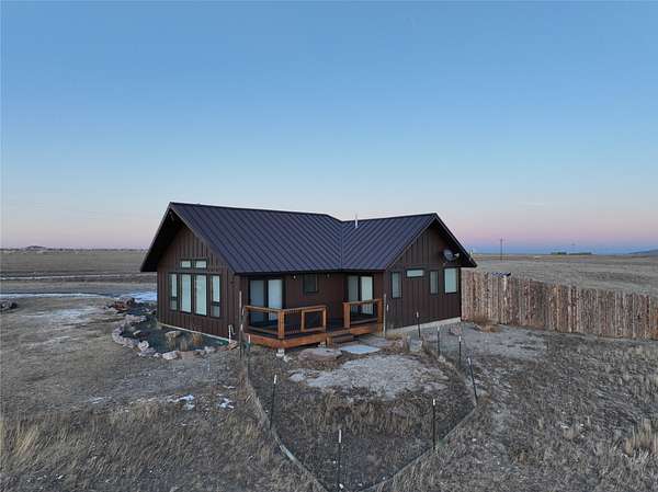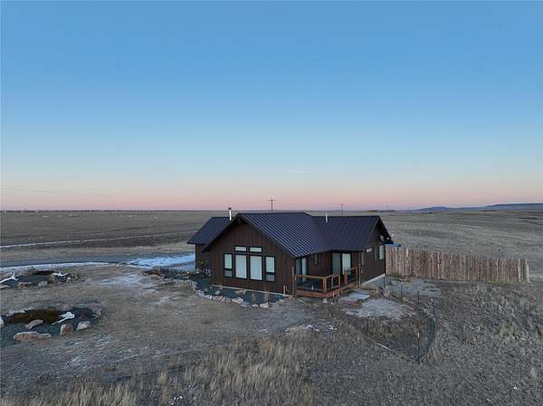 Enjoy panoramic views of the Rocky Mtn Front from this attractive property, offering an opportunity to embrace the tranquility of rural living. Located on 40 acres a short drive up Pishkun Rd from Choteau, providing expansive views, wildlife, and close access to Pishkun Reservoir, national forests, and trailheads. The sunken living room flows into an open concept kitchen with tile backsplash and butcher block counters, tied together with vaulted wood ceilings. The wood fireplace provides perfect ambiance for quiet relaxation. The property also features a primary bedroom with wood ceilings, a walk in closet, soaking tub with a view, and a walkout back deck. The secondary bedroom comes complete with a built in Murphy bed, perfect for turning the space from a guest room to a home office. Outside, the property is perimeter fenced and has a windbreak, barn, and hay storage. The propane generator provides for peace of mind in case of any power outages. Come experience life on the Rockies!