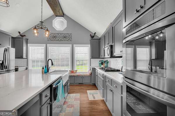 Immaculate 4-sided brick home on 3.54 private acres in Hart County! This well-maintained property offers the perfect blend of comfort, functionality, and space. Enjoy peace of mind with a 9-year-old roof featuring durable 30-year architectural shingles. Step inside to find a beautifully updated kitchen complete with a large island, stainless steel appliances, and an additional bar area that overlooks the spacious great room. The great room features taller ceilings and a stylish electric fireplace, creating a warm and inviting space for gathering and entertaining. The home also includes a partial basement, ideal for a home gym, game room, or additional storage. It also has a three car garage and a nice mudroom/laundry room. Outside, the property really shines with a 30x36 workshop equipped with heating and cooling, concrete floors, a roll-up door, and a convenient half bath-perfect for hobbyists, small business use, or extra workspace. A covered front area with a swing provides the perfect spot to relax and take in the peaceful backyard setting. Located just minutes from downtown Hartwell and Lake Hartwell, this property offers privacy without sacrificing convenience. A rare find combining quality construction, modern updates, and versatile space-don't miss this opportunity!