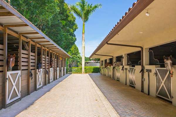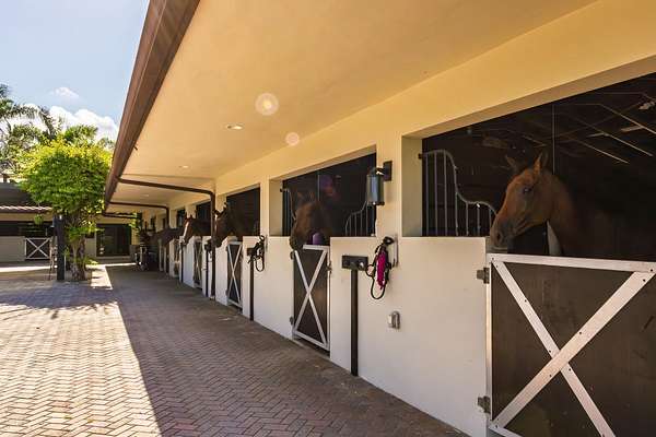 Welcome to Eye Candy Jumpers, a premier equestrian estate where world-class sport and refined luxury unite. Situated in the heart of Wellington, this distinguished haven is home to one of the most recognized names in international Show Jumping, celebrated for producing top competitors and excelling on the global stage. Designed with the serious rider in mind, the estate features a gorgeous irrigated arena with premium GGT footing and 7 acre derby field, ensuring peak performance conditions. The stables currently feature 10 impeccably maintained stalls, while expansive grass fields and expertly designed paddocks create an ideal environment for both training and relaxation.