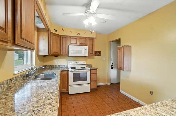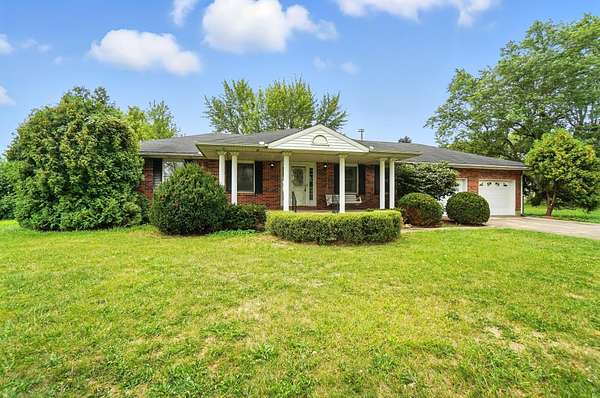 Welcome to this 3-bedroom, 1.5-bath brick ranch in desirable Bethel Township, Miami County. Nestled on 2 acres, it offers comfort, convenience, and plenty of space inside and out. The remodeled kitchen features granite counters, Kemper maple cabinets, and a pantry, opening to the dining room with sliding door to the back patio. The living room is cozy with a woodburning stove, and the covered front porch is perfect for relaxing. A full unfinished basement adds possibilities, while the 2-car attached garage and concrete drive with extra parking make daily life easy. Outside, enjoy a 50x30 barn with electric, overhead door, and dual lean-to additions, plus a 23x12 shed with electric. Updates include a new heat pump and plumbing in 2025, well pressure tank in 2021, and updated electric. Conveniently located near the I-70/75 corridor, shopping, and restaurants. Bethel Local Schools. Home is being sold to settle an estate.