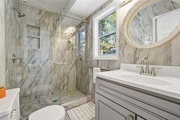 Exceptional land value and location along with a beautifully renovated home in the Heart of Vinings. Welcome to this stunning renovated home nestled on a large 2.25-acre lot in the desirable Homesite subdivision of Vinings community. Originally built in 1984, this home has been thoughtfully updated throughout, blending classic charm with modern comfort. Step inside to discover fresh paint, gleaming hardwood floors, and bright open spaced filled with natural light. The completely renovated kitchen features brand-new stainless-steel appliances, elegant cabinetry, and an inviting eat in-in area, perfect for everyday meals or entertaining. The newly updated bathrooms add a touch of luxury with modern finishes and fixtures. Enjoy the outdoors from the multiple balconies that surround the home, offering peaceful views of the expansive possibilities -plenty of room for outdoor living, gardening, or even the potential to build additional homes. Located in a sought-after neighborhood, this property offers excellent access to major roads and multiple entry points, making it one of the most desirable places to live in Vinings area. The property is close to top-rated public and private schools, as well as shops, restaurants, hospitals, and other amenities. Don't miss the opportunity to own this beautiful, move-in-ready home with exceptional land value and location.