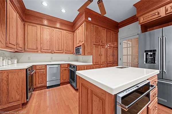 - Dishwasher, Garbage Disposal, Hood, Oven, Range, Refrigerator, Trash Compactor