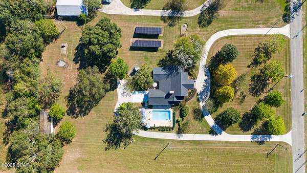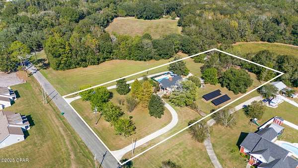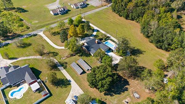 CURRENTLY UNDER CONTRACT, SELLER WILL CONSIDER BACKUP OFFERS - Just around the corner from The Baptist College of Florida, this beautiful two-story home in the City of Graceville offers the perfect blend of comfort, charm, and modern convenience. Located on a lovely property featuring a grid-tied solar system, this home enjoys remarkably low electric bills. A new roof, plantation blinds, and many recent updates add to its appeal, while the refreshing saltwater pool with multi-color lighting creates a stunning nighttime ambiance-perfect for relaxing or entertaining. Inside, you'll find a warm and inviting layout that includes a formal dining room, a cozy breakfast area, and a dedicated office ideal for working from home or managing daily tasks. The kitchen offers plenty of counter space, abundant cabinetry, and modern appliances, making it a joy to cook and gather in. Upstairs, two bedrooms share a convenient Jack and Jill bathroom, along with a small entertainment room that makes a great play area, TV space, or reading nook. Each bedroom includes spacious walk-in closets, providing generous storage. The home has been thoughtfully maintained for comfort and efficiency, featuring upgraded HVAC systems, an encapsulated crawl space, and a newer hot water heater. Additional features include a security system with exterior cameras for peace of mind and a termite bond for added protection. Outside, you'll appreciate the paved road frontage and circular driveway, along with a spacious 20x40 workshop featuring a concrete foundation and garage door-perfect for hobbies, storage, or projects. The backyard is a true retreat, complete with a firepit, playground equipment, and space for a large garden. The pool area provides plenty of room for entertaining, and the fireplace remains under warranty for added reassurance. Offering a lifestyle that blends functionality, security, and relaxation, this Graceville gem is ready to welcome its next owners.