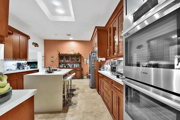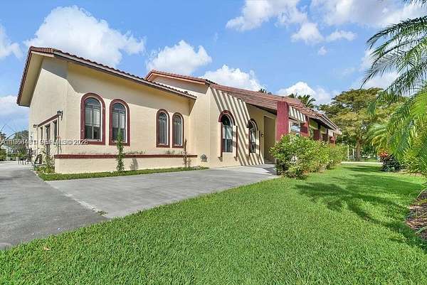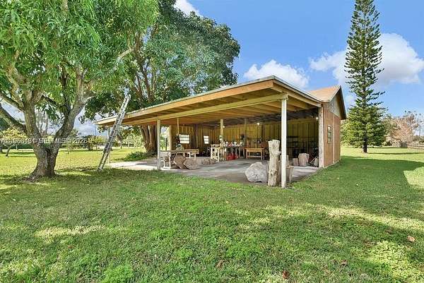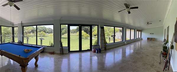 Experience refined estate living in this private 2.5-acre tropical retreat in exclusive Southwest Ranches. Zoned for equestrian use, this elegant 6BD/4BA, 4,448 SF residence boasts 20-ft ceilings, a designer chef’s kitchen with premium appliances, expansive family, media, and game room, plus a corner lot adorned with 30+ tropical fruit trees. A rare blend of luxury, space, and privacy.